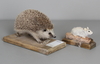 Monterade på träsockel. Längd 27, höjd 16 cm respektive längd 15, höjd 8 cm.