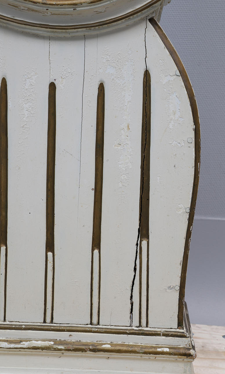 Ej funktionstestad eller genomgången, ingen funktionsgaranti lämnas. Sprickor i trä. Omfattande färgslitage.