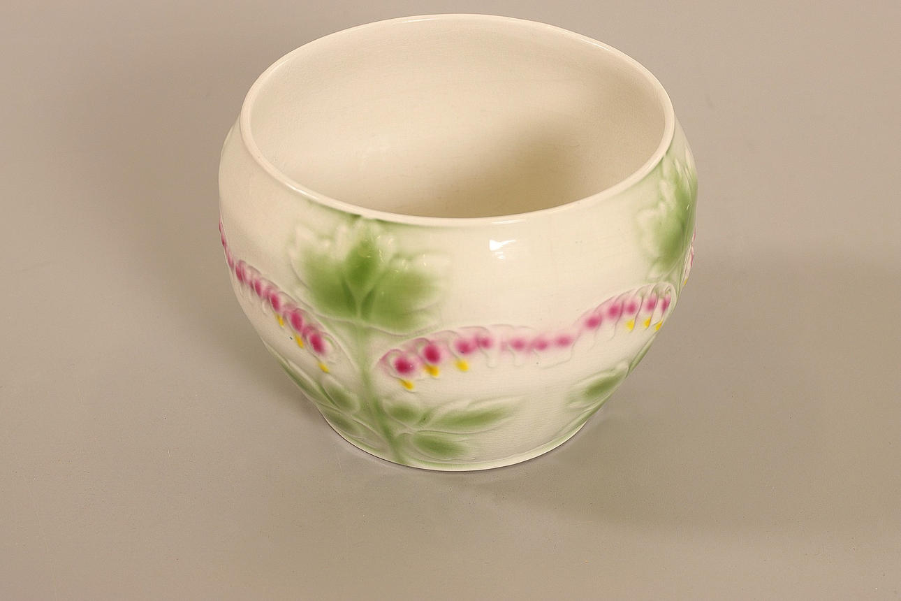 Ytterfoder, majolika, dekor av löjtnantshjärta, Gustavsberg, 1900-talets första del. Höjd 17,5 cm Diameter ca 24 cm.