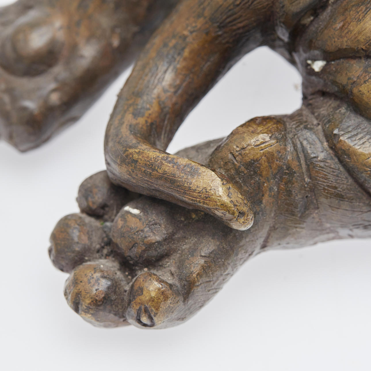 Åldersanpassade tecken på gnidning, partiell patina och nötning.