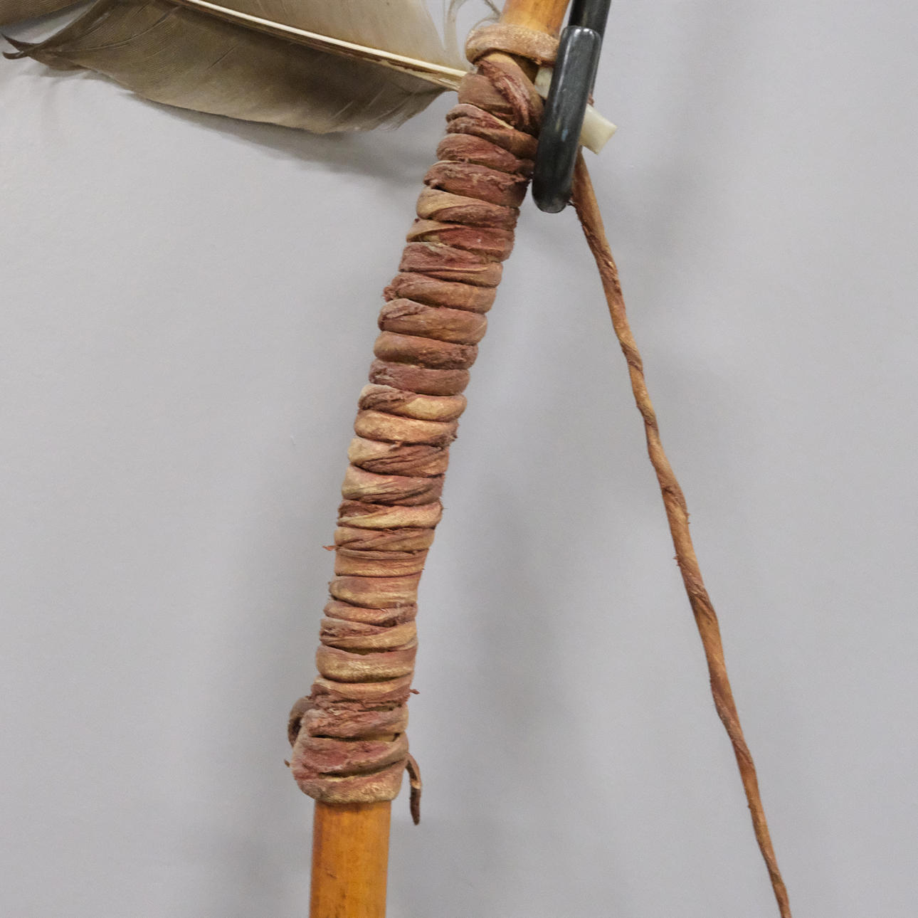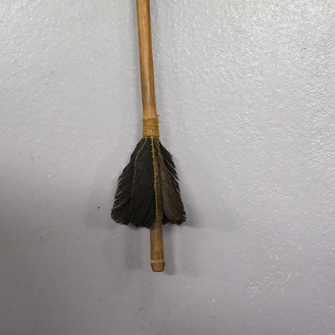Pilbåge med fjäderdekor. Längd spets till spets: ca 140 cm.