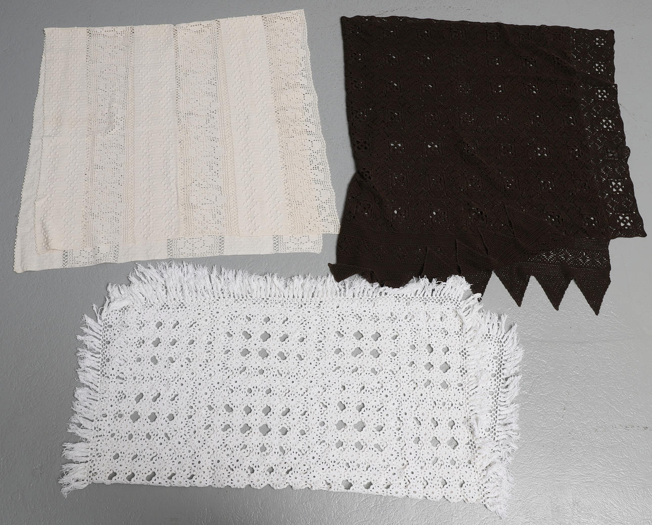 Brunt överkast för enkelsäng, med kantdekor, mått ca 215x125 (dekorens spets), passar 90-säng