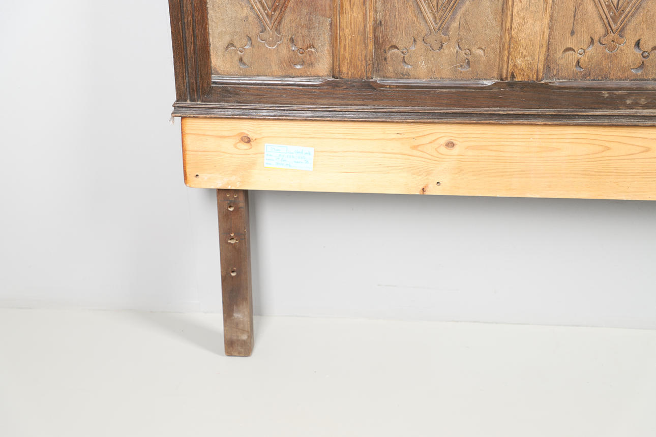 EN SÄNGGAVEL AV EK MED PANELER.
