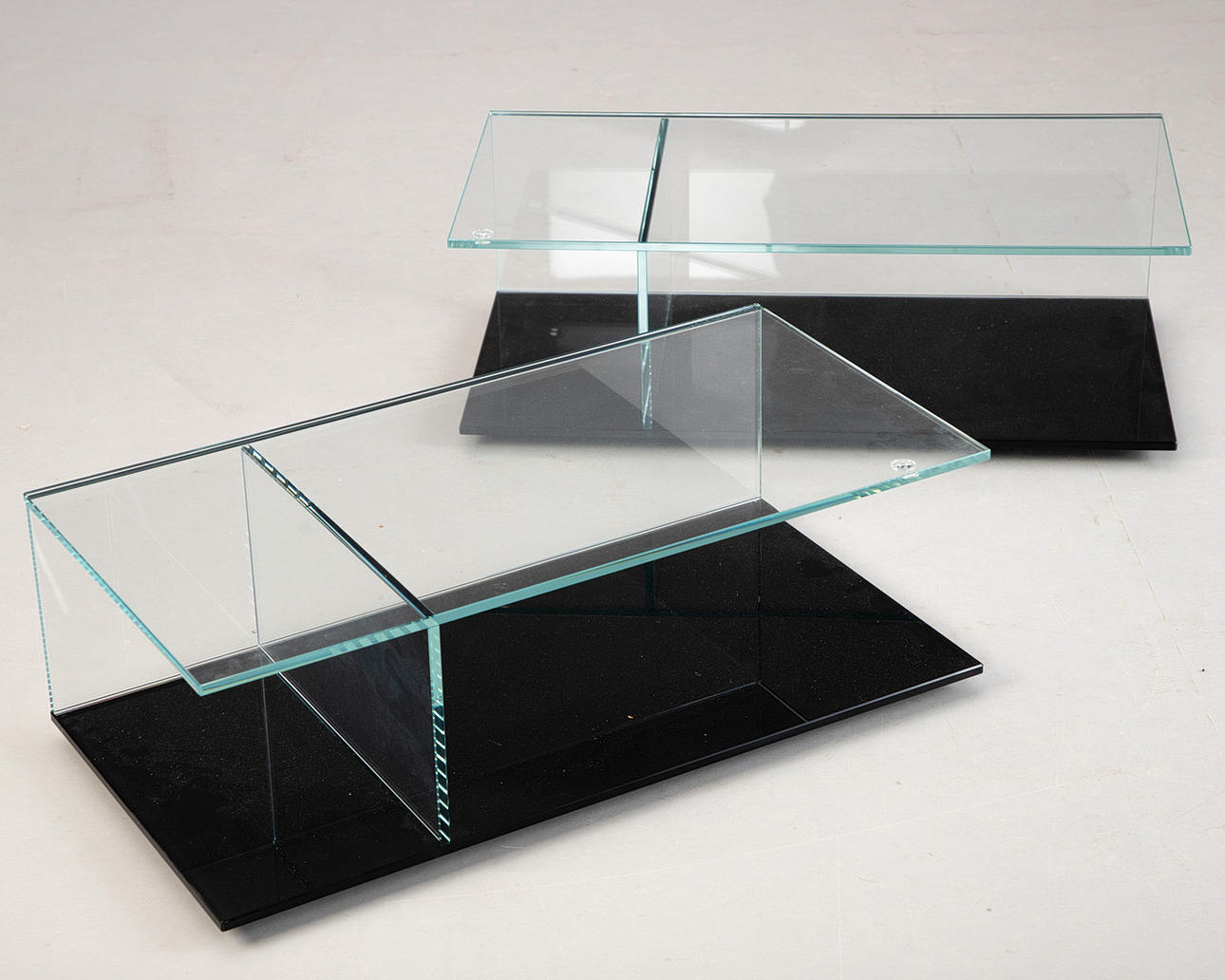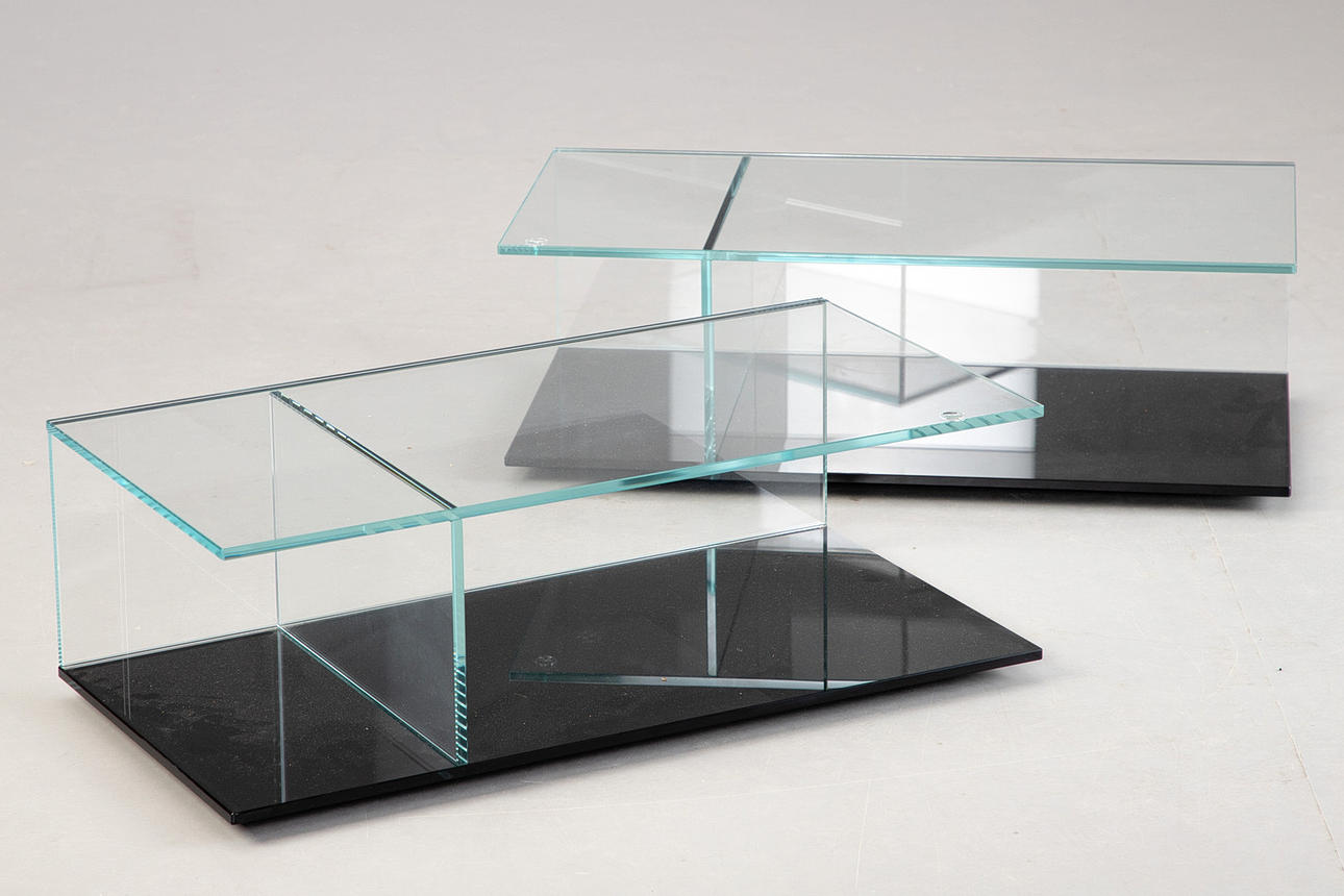 Piero Lissoni, ett par soffbord/soffbord, ”MEX” för Cassina. Italiensk modern. Extra ljust säkerhetsglas Basram svartmålad.