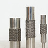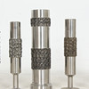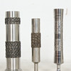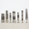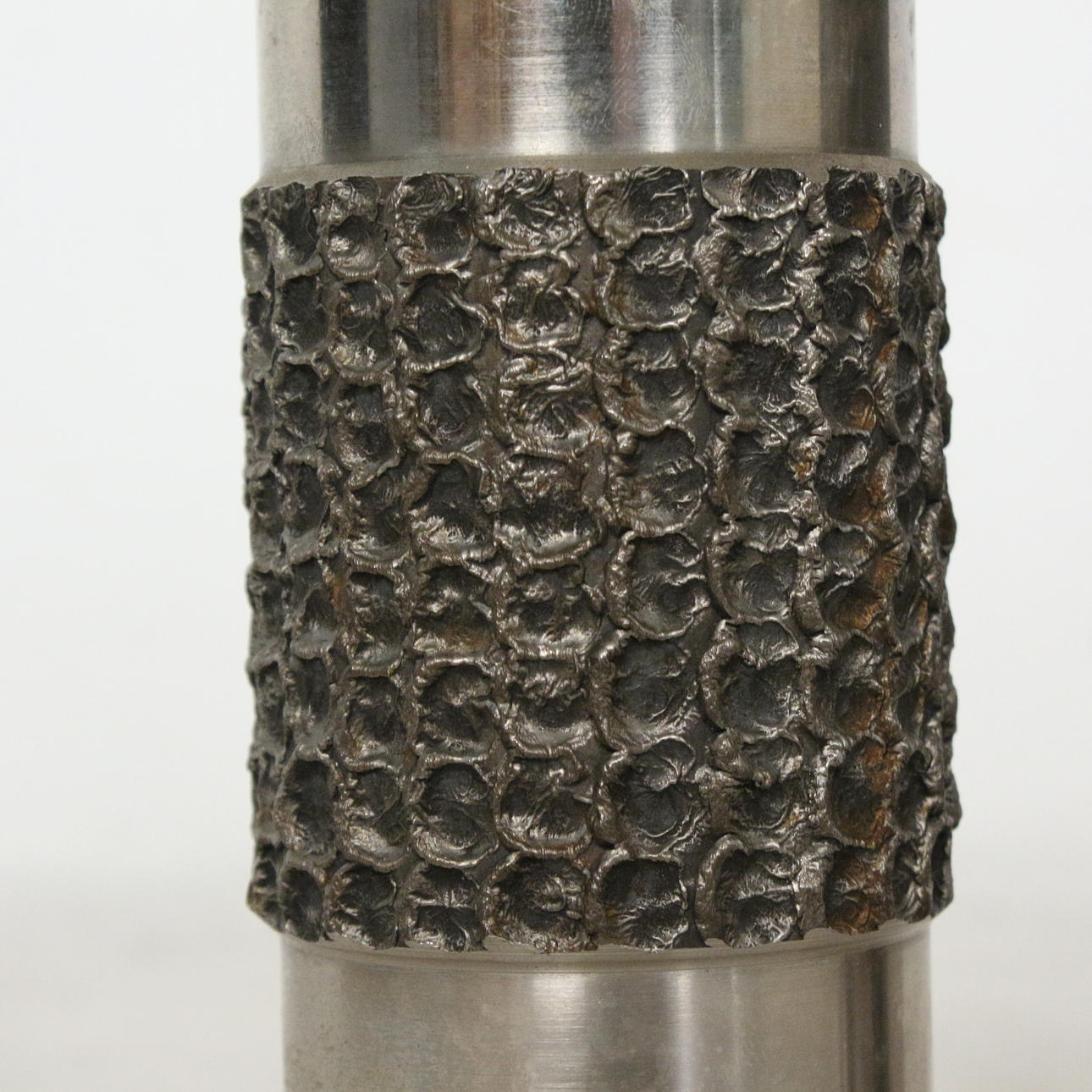 Brutalistiska vaser, rostfritt stål, Mått mellan H. 26,5 cm, Ø 5,5 cm och H. 18 cm, Ø 5 cm.