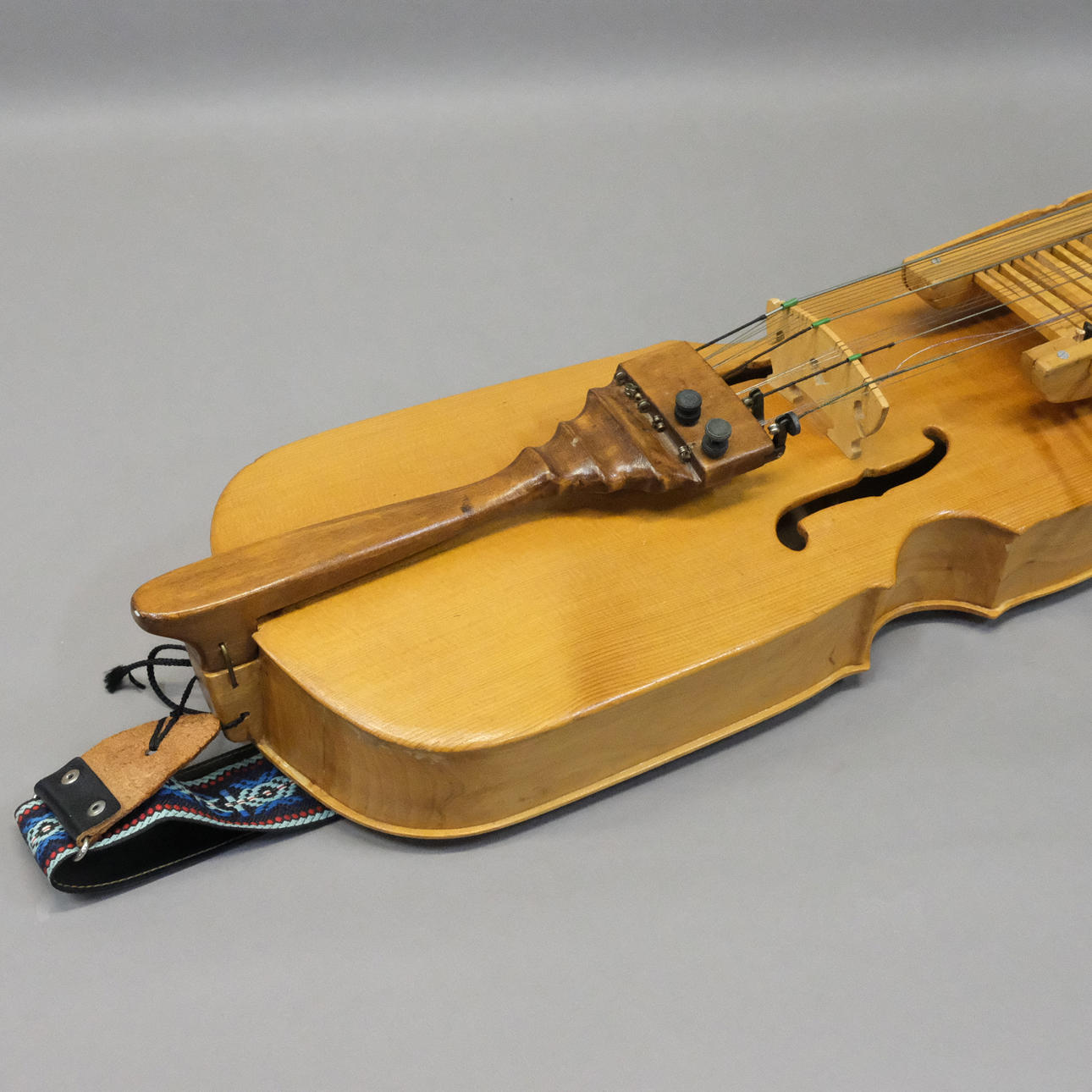 Längd: ca 92 cm. Medföljande stråke. och tillbehör. Tillverkad av Maj-Britt Nilsson, Kävlinge, under lärare Yngve Johnsson, Glumslöv.