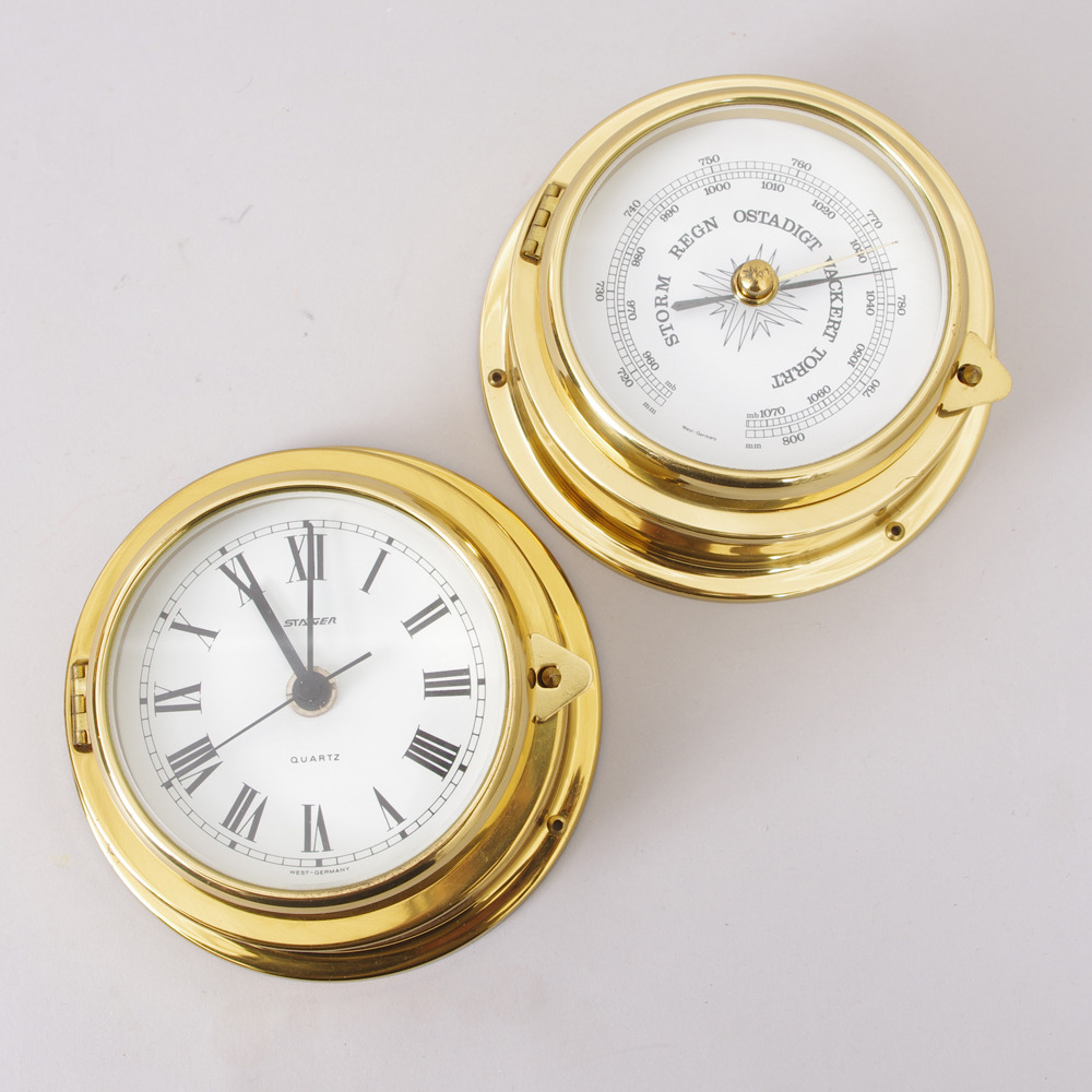 253773. SKEPPSBAROMETER SAMT SKEPPSUR, mässing, Staiger.