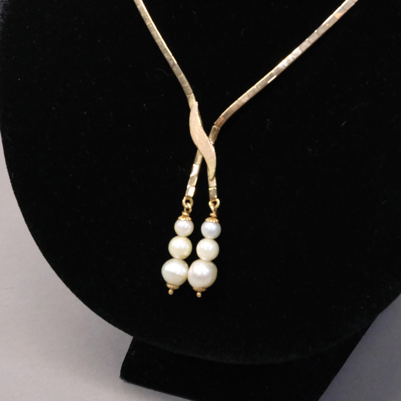 Hängande kläppar med totalt sex doserade pärlor, diam. ca 6mm-8mm, längd 2,5cm.