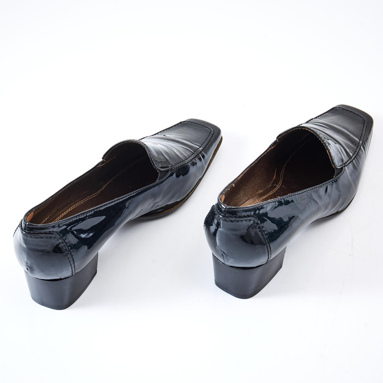 Klackhöjd ca 3,5 cm, storlek 37,5, kartong i original medföljer.