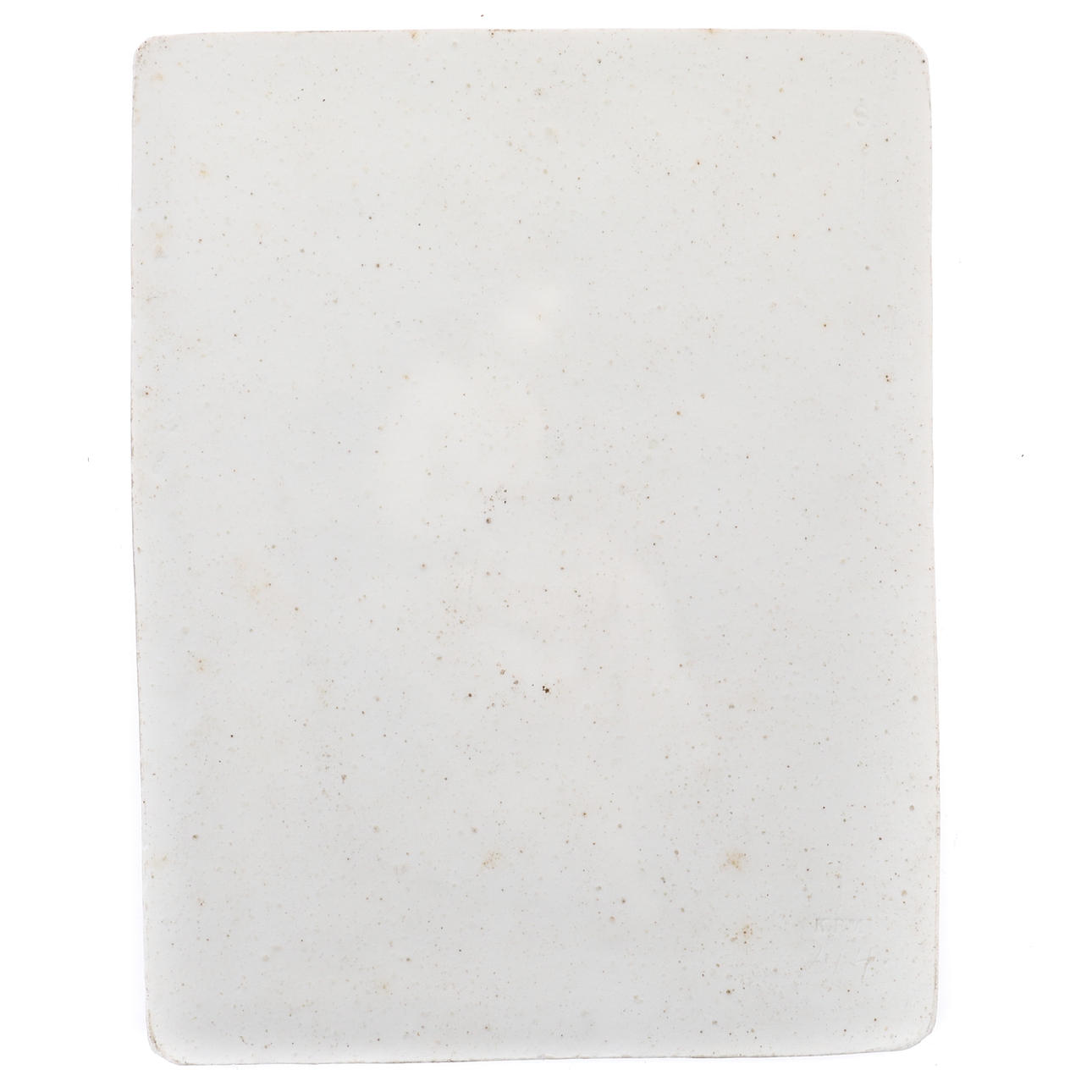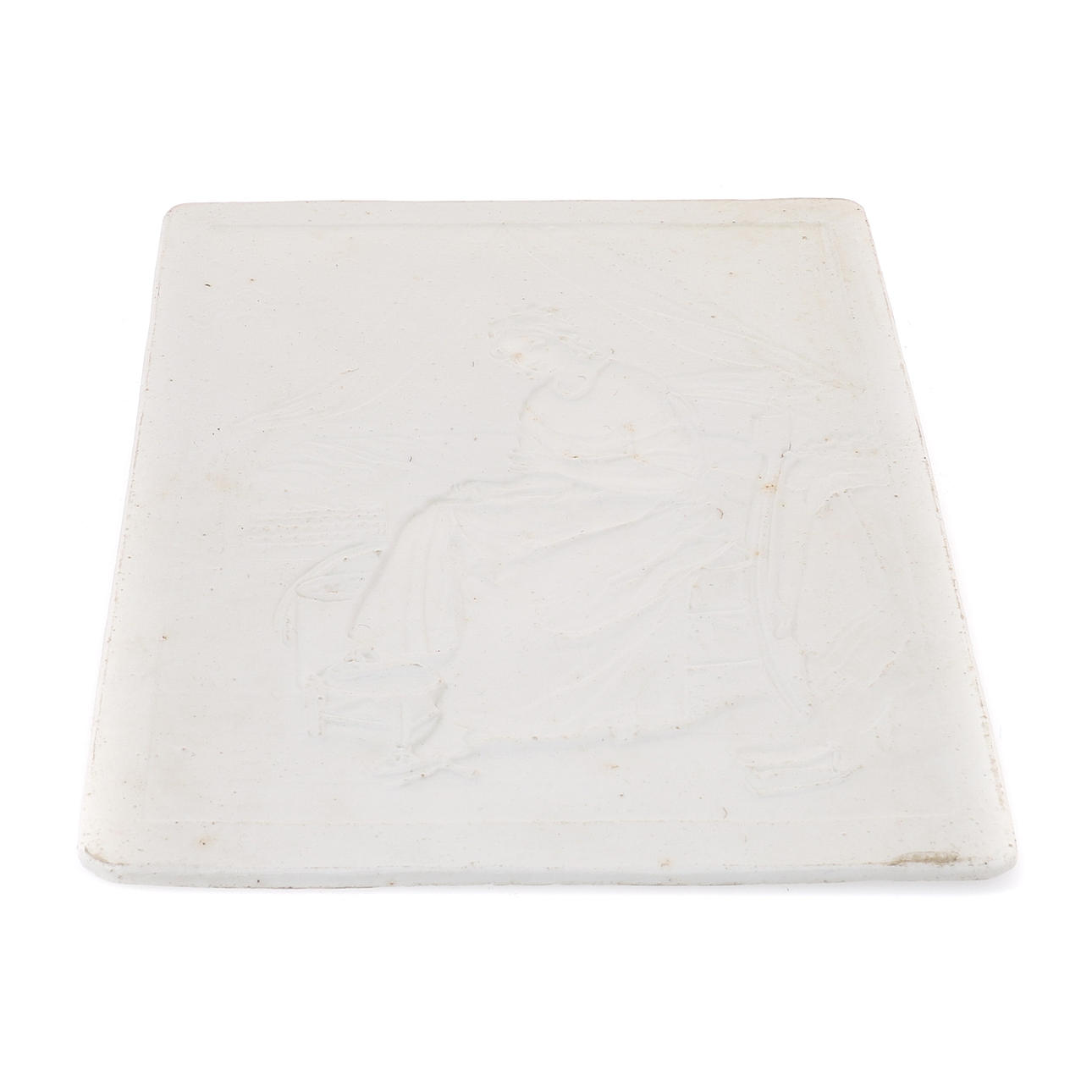 den unga damen sitter på en stol i ett interiör, draperier till höger sida, en säng i bakgrunden, 19cm x 14.5cm.