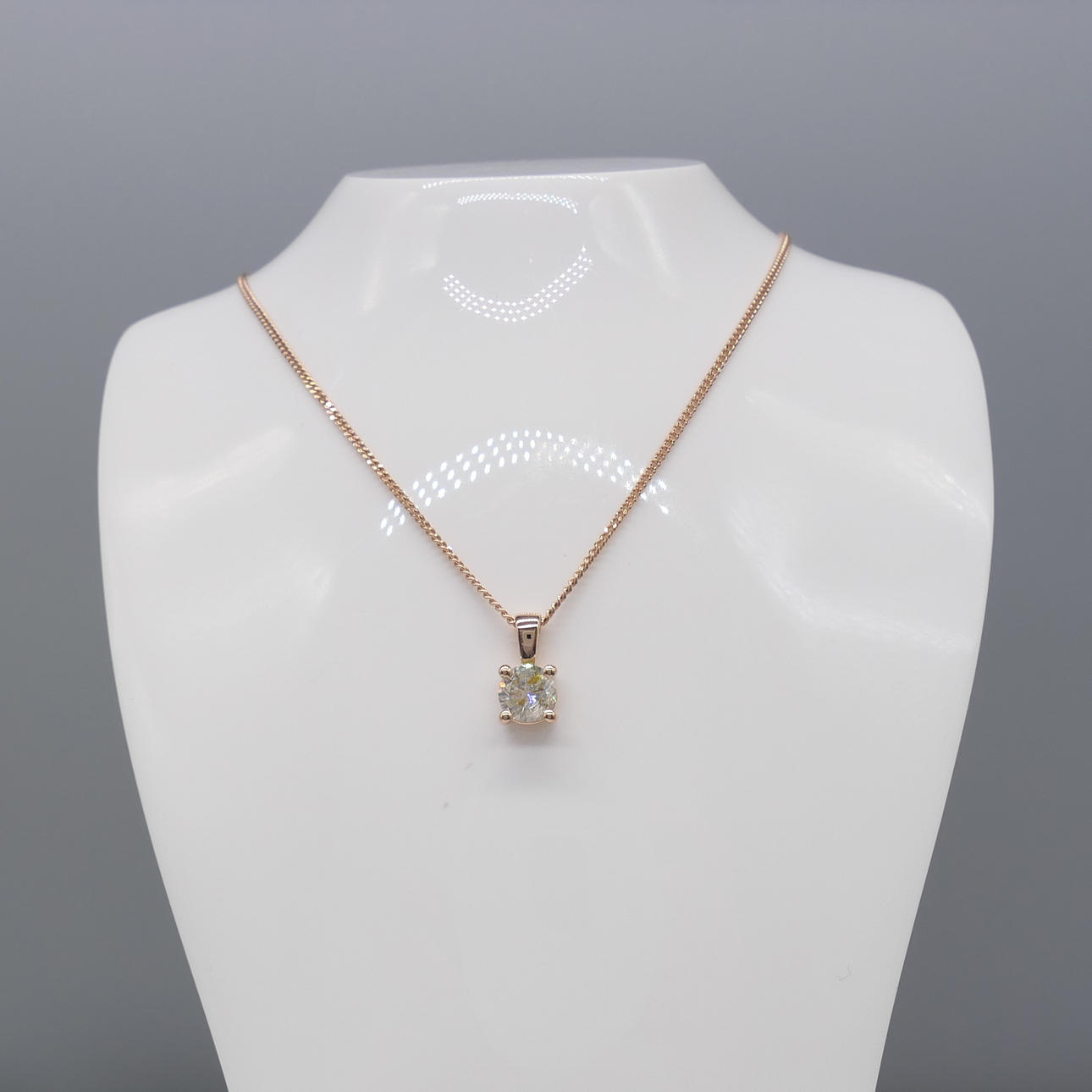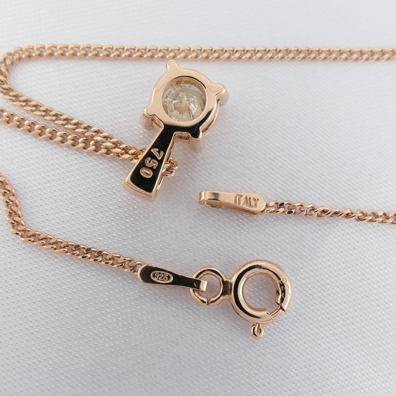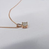 Hänge: 18k roséguld, som stämplat; 4-klo mount. Kedja: ökade guldpläterat silver; trottoarkanten länkar; 45cm lång; bult ring spänne.