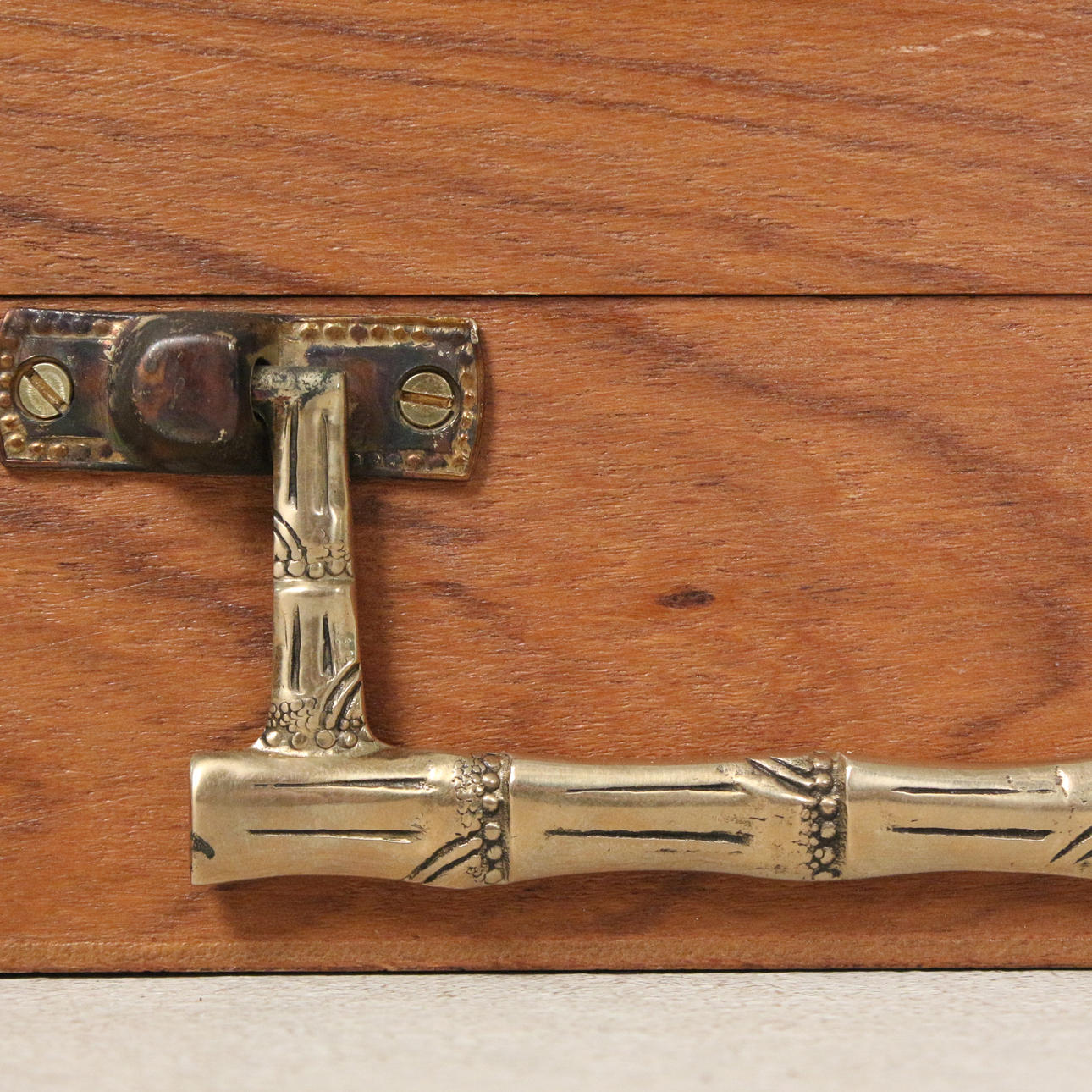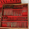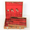 Thai mässing bestick set, trä bestick fall, 137 bitar, Mått på fodralet ca..: 44,5 x 46,5 x 10 cm.