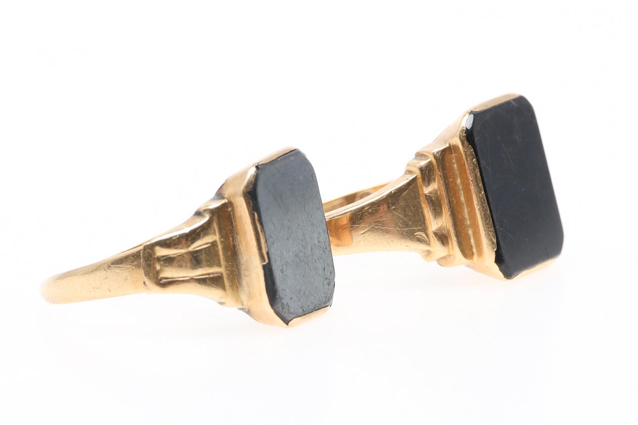 Innefattade stenar i form av svart onyx. Total vikt inkl sten ca 9,10 gram.