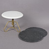 1 tårtfat, snurrbar/höjbar ställning i guldfärgad metall och skiva i polerad vit sten, högsta höjd 24 cm, diameter på skiva ca 28,5 cm.