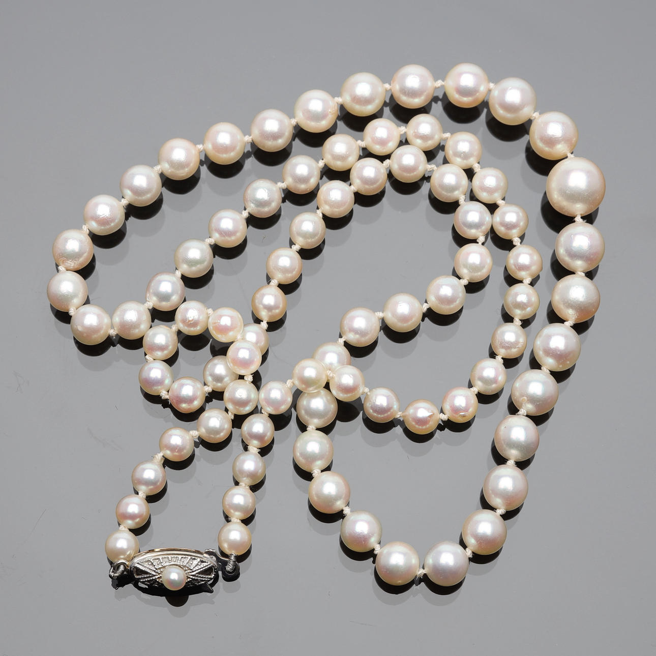 2548915. PÄRLCOLLIER doserat med lås i guld 18K.
