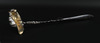 Snäckformad med fäste i form av vinranka. delvis förgylld. handtag i ebenholts. Längd 51 cm.