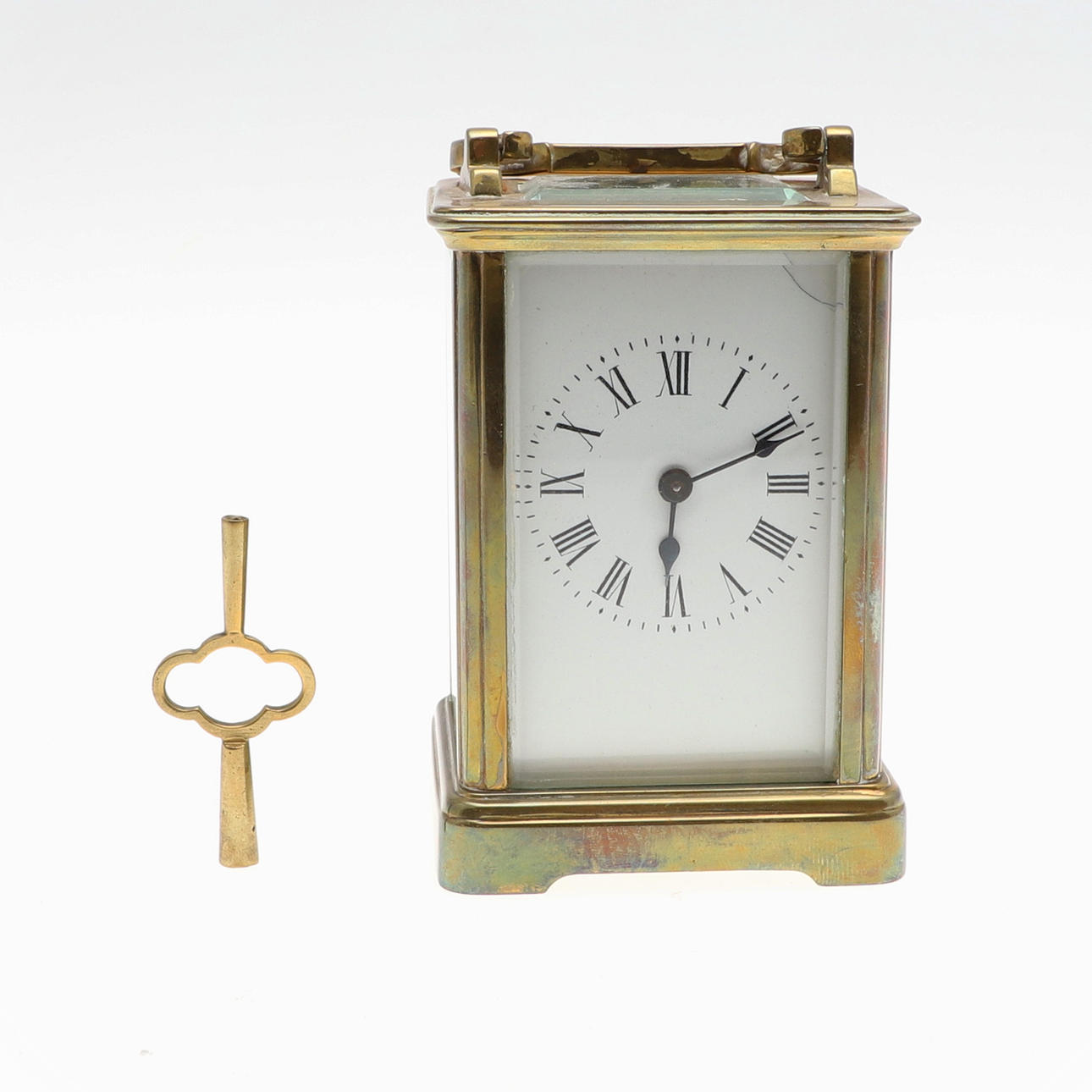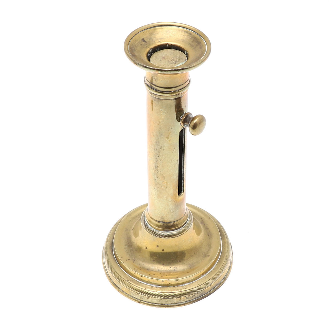 med nyckel, höjd exklusive handtag 11cm; tillsammans med en justerbar ljusstake i mässing, höjd 19cm (2).