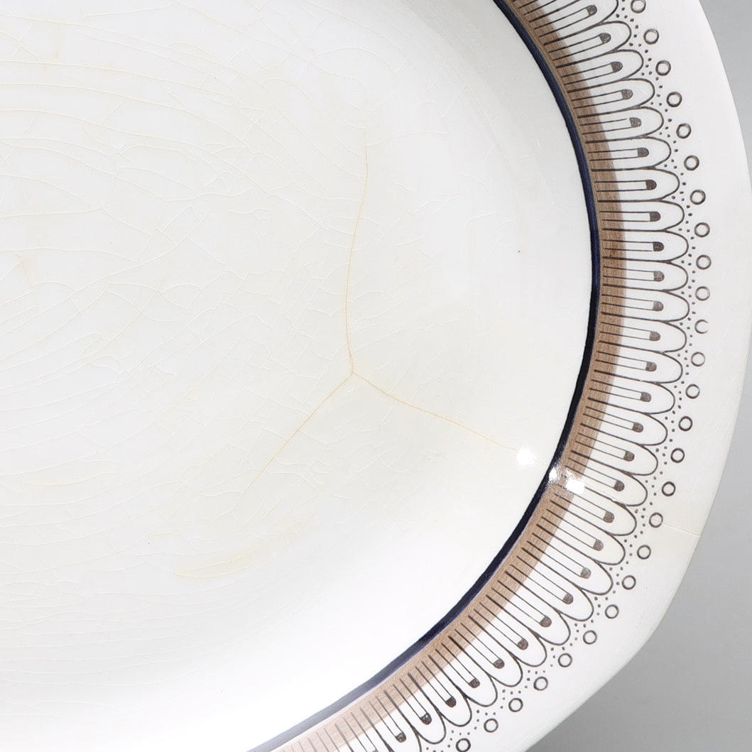 1 uppläggningsfat, 29 cm lång (spricka)