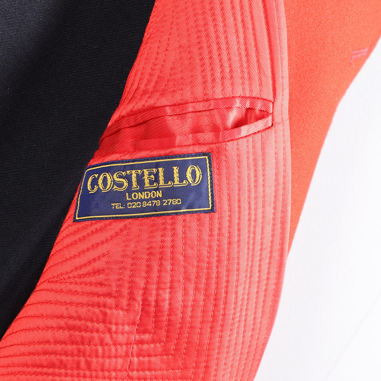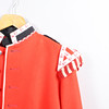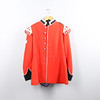 En outgiven Bandsman tunika och byxor av militären Taylor Costello i London, den röda tuniken med dekorativa fransade axlar och gränser, trummärke till höger ärm. Gjord för Cinque Ports Rifle Volunteers band, Nuvarande mönster, tuniken 88 cm topp till botten. Med två par byxor med smal röd rand, ett par med etikett 'No. 1 Klänning, R.M. Storlek 7 Edgard och söner.