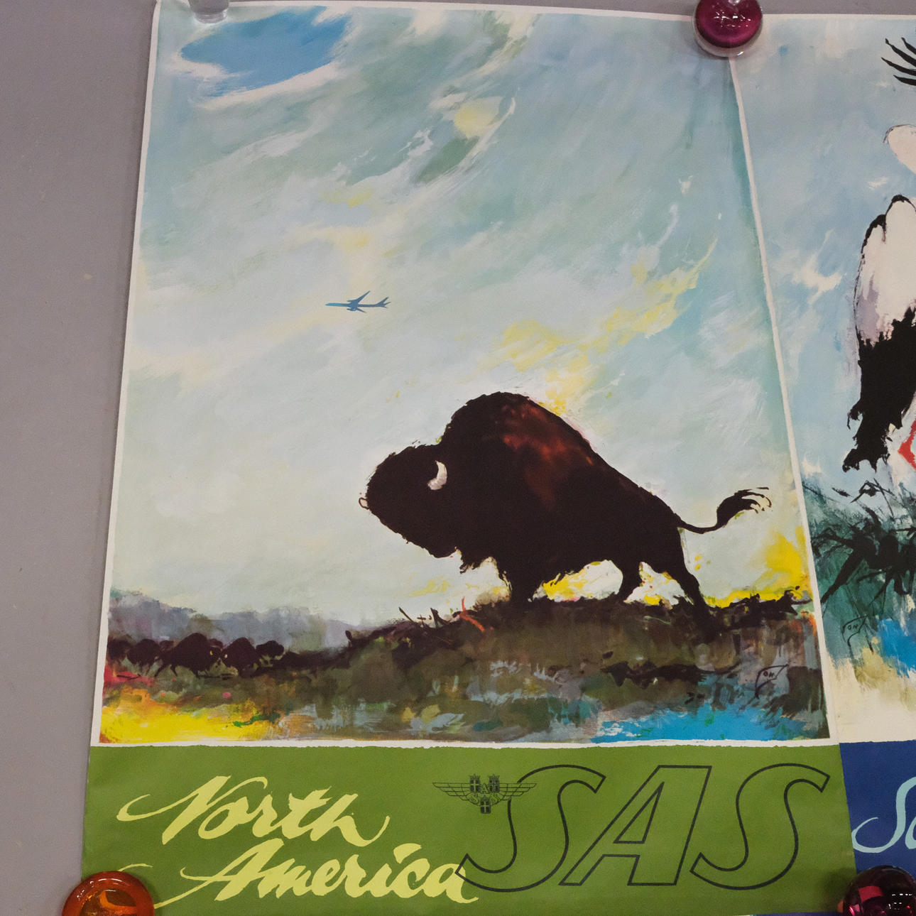 Scandinavian airlines planscher, USA, North America, Africa och Scandinavia, mått 60x100 cm.