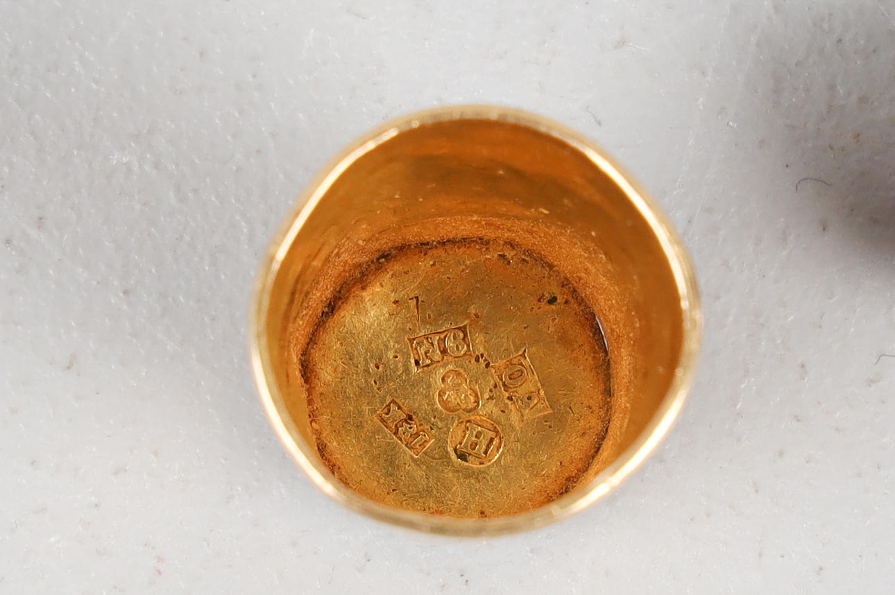 Fingerborg i 18K guld, Olaus Andersson, Halmstad, 1891, vikt 2,9 gram.