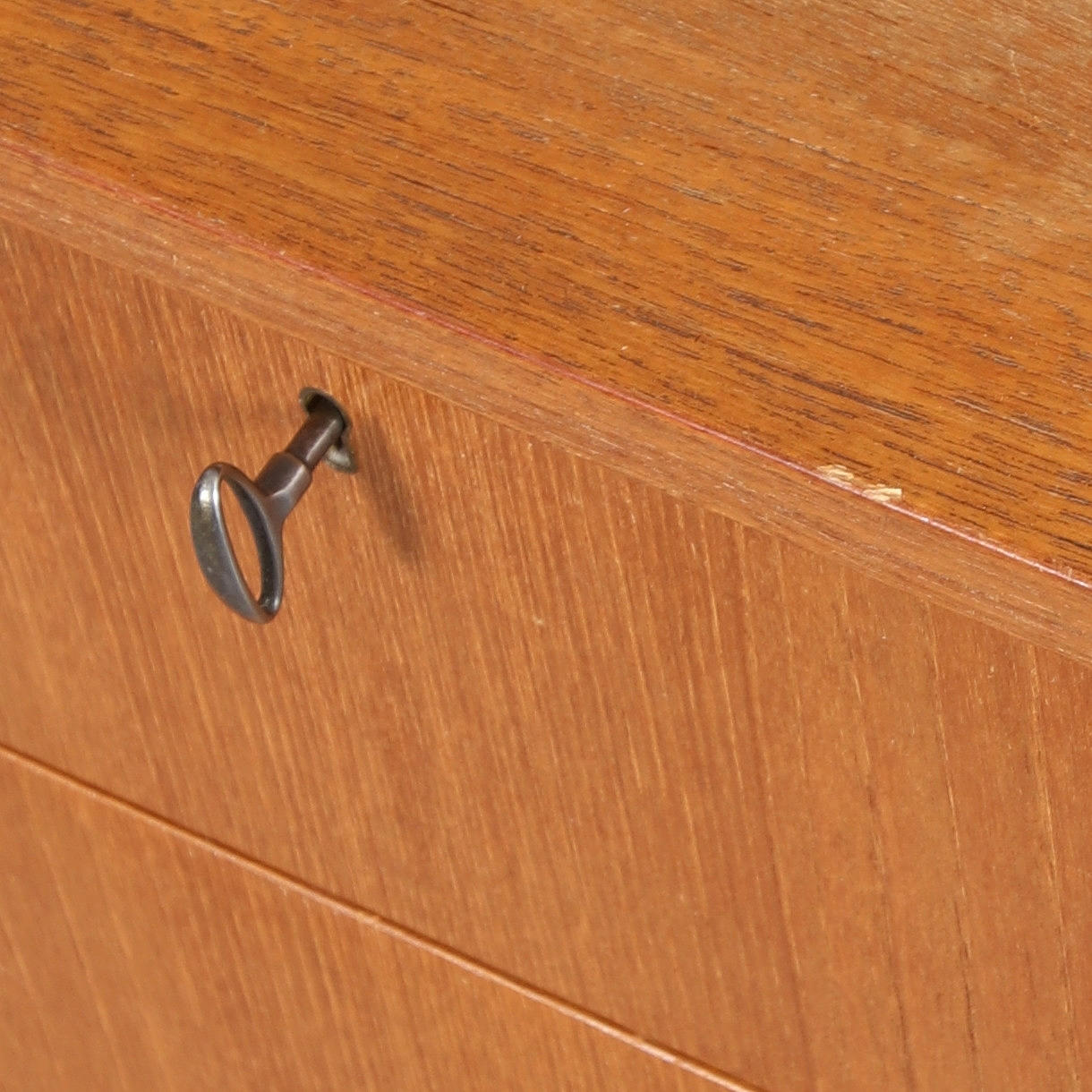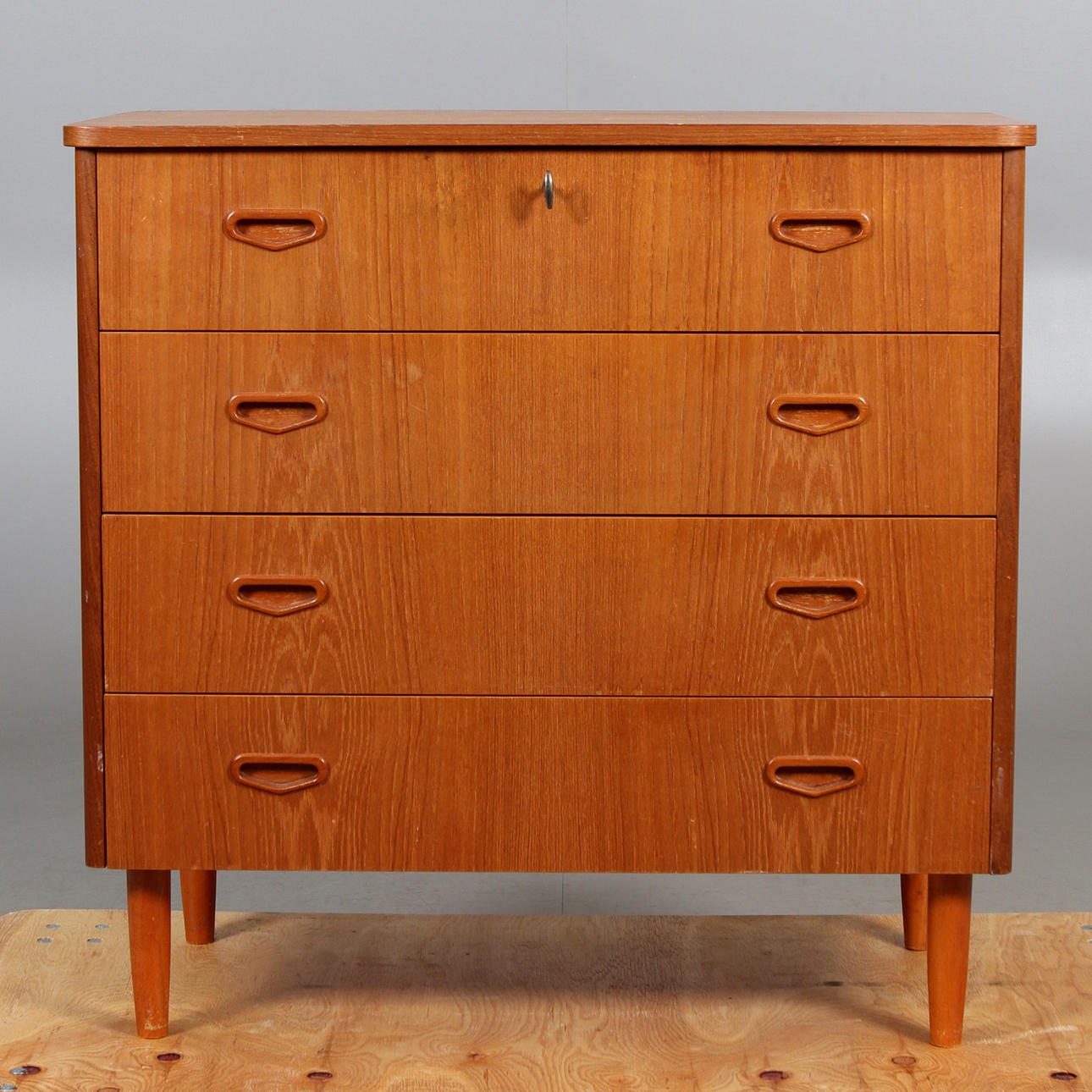 Med fyra draglådor. Längd 82, bredd 41, höjd 80,5 cm.