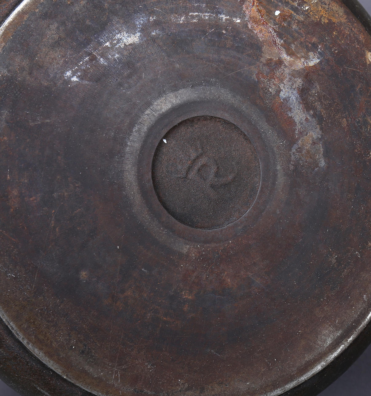 Svart, märkt med krona och ett "R". Diameter ca 22 cm.