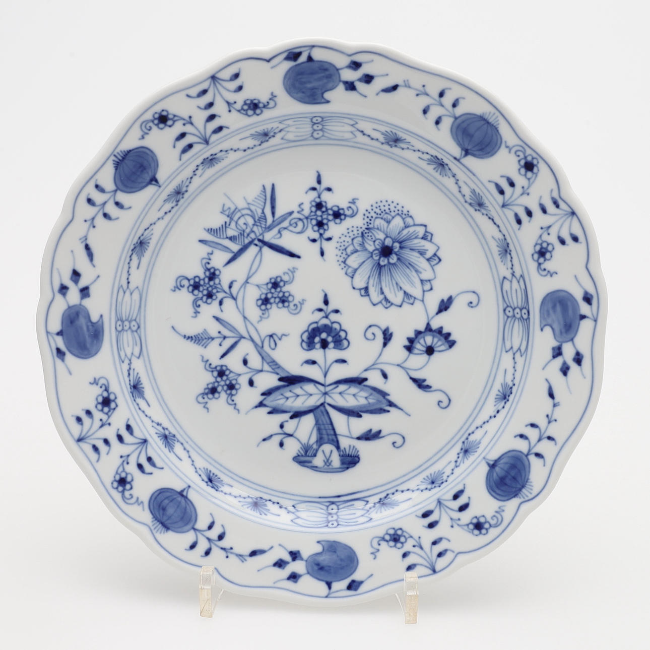 Porslin, lökmönstret, diameter 22 cm. Tre stycken första sortering, övriga tredje sortering.