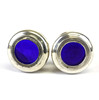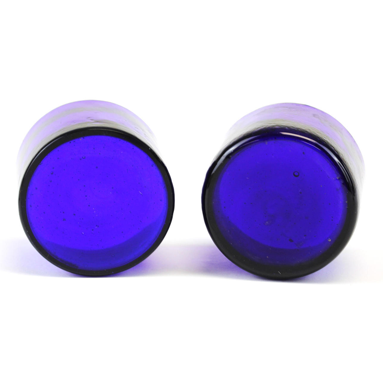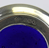 Mycket mindre nagg på det blå glaset på en kruka, slitage på silver och smärre flisning till botten av båda blå glaset.