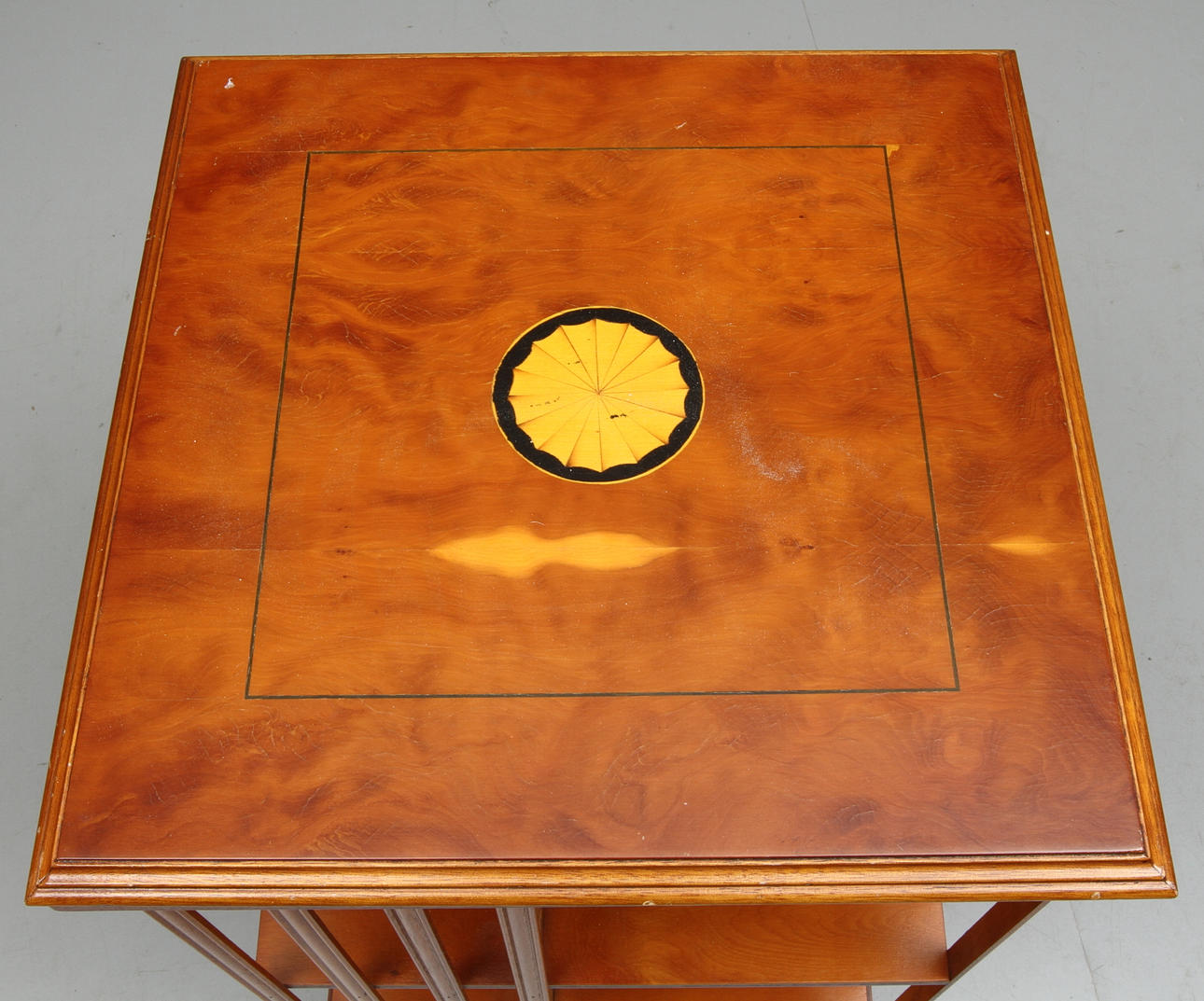 Intarsiadekor. Längd 48, bredd 48, höjd 79 cm.
