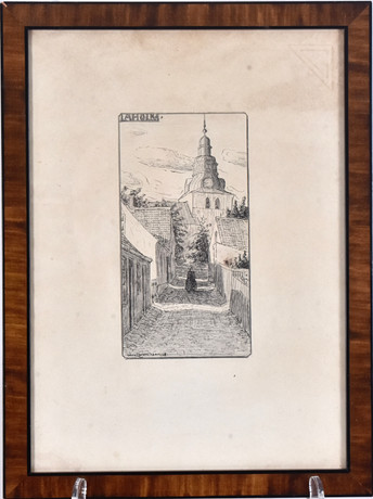 2573908. OSKAR ANDERSSON OA (1877-1906). "Sommarnöje", tuschteckning, monogramsignerad, med följer boken "Bibehåll skenet! Andra sidor av O A" av Jan Hannerz.