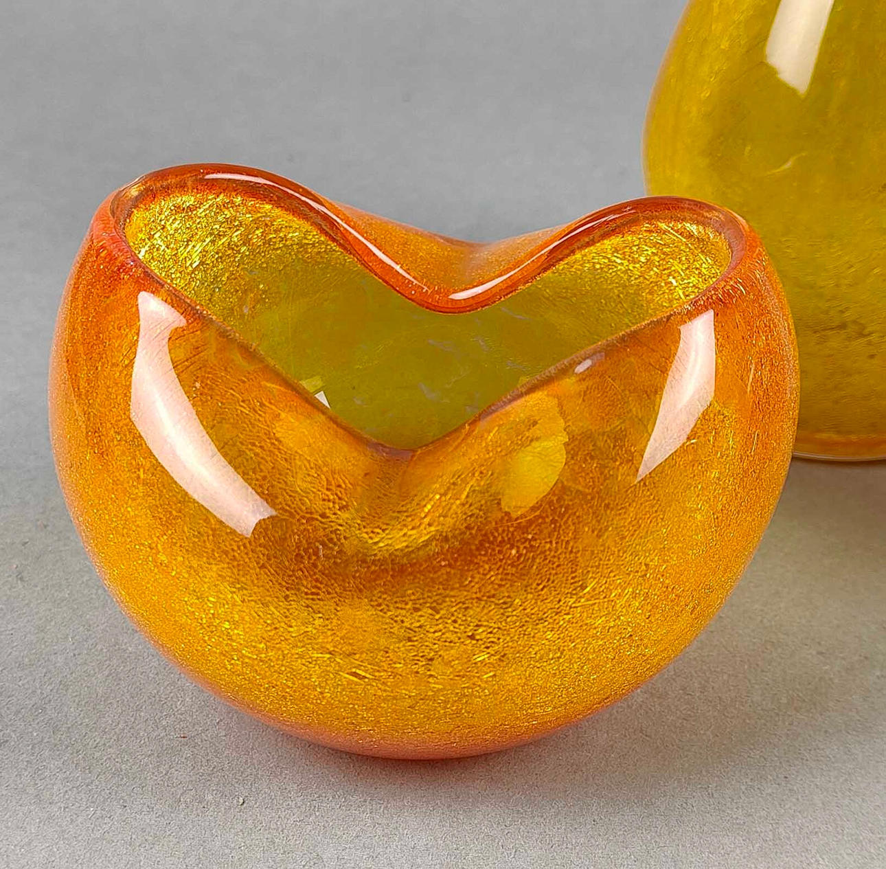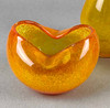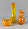 färglöst handblåst kristallglas med orange och gult pulver smälter, olika former, H ca. 9 till 26 cm.