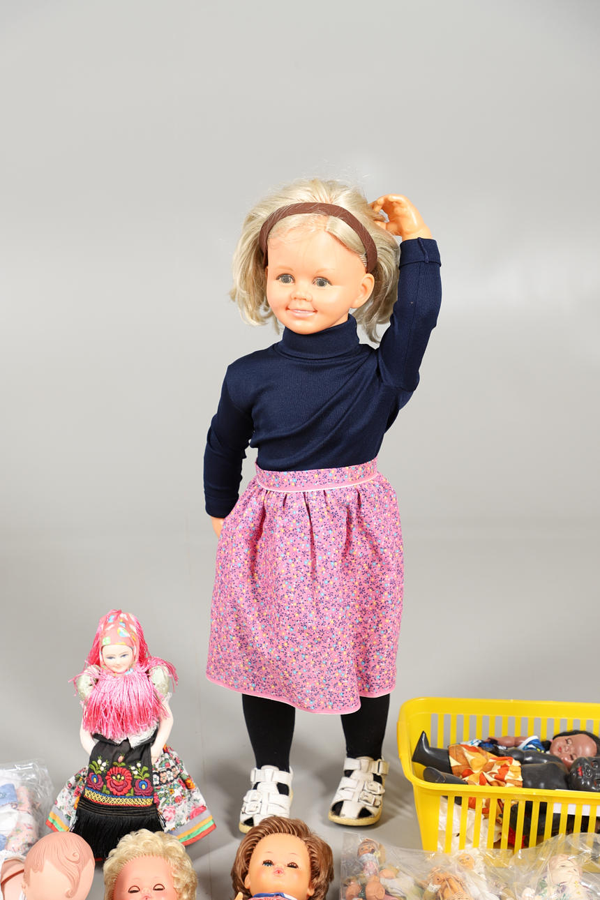 Ett blandat parti inklusive en stor Meine Schwester Marianne docka, inköpt 1976 (89 cm hög), också med en Mattel Mermaid, Stamtavla svart docka, celluloiddockor, kostymdockor och andra dockor. Också med två franska terrakottafigurer.