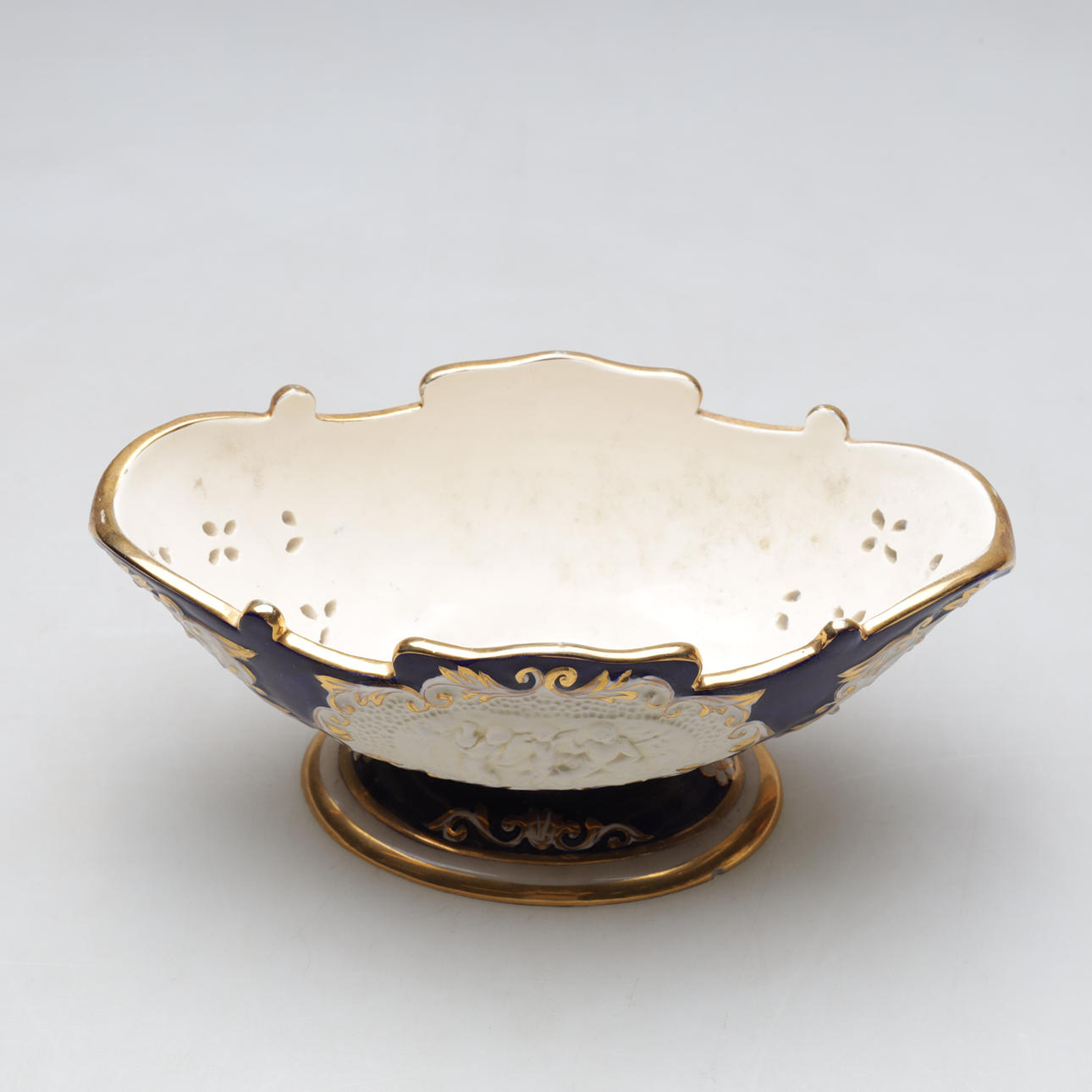 Dekor av bl.a. figurscener. Delvis genombruten.