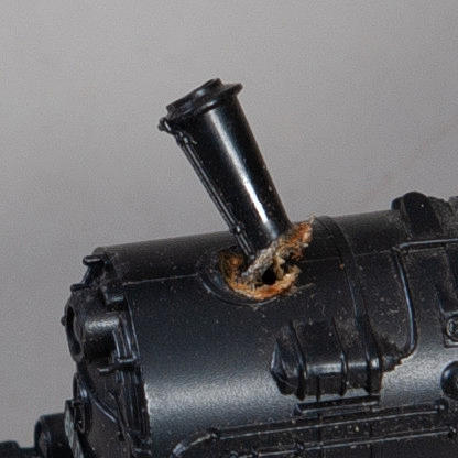 ej funktionstestat Lokets skorsten löst (ej av) delar med mindre skador.