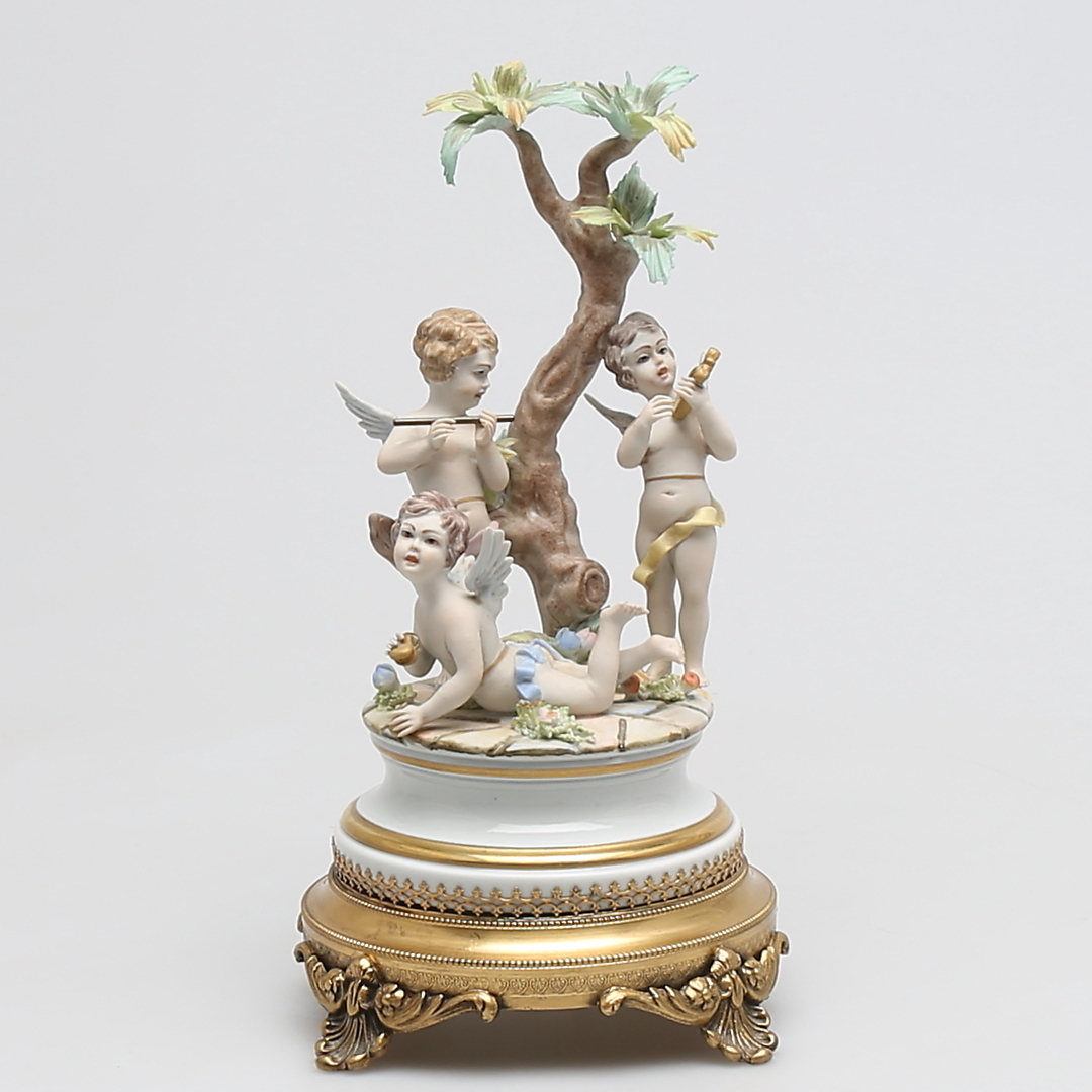 258077. FIGURINGRUPP i porslin, musicerande änglar, märkt.