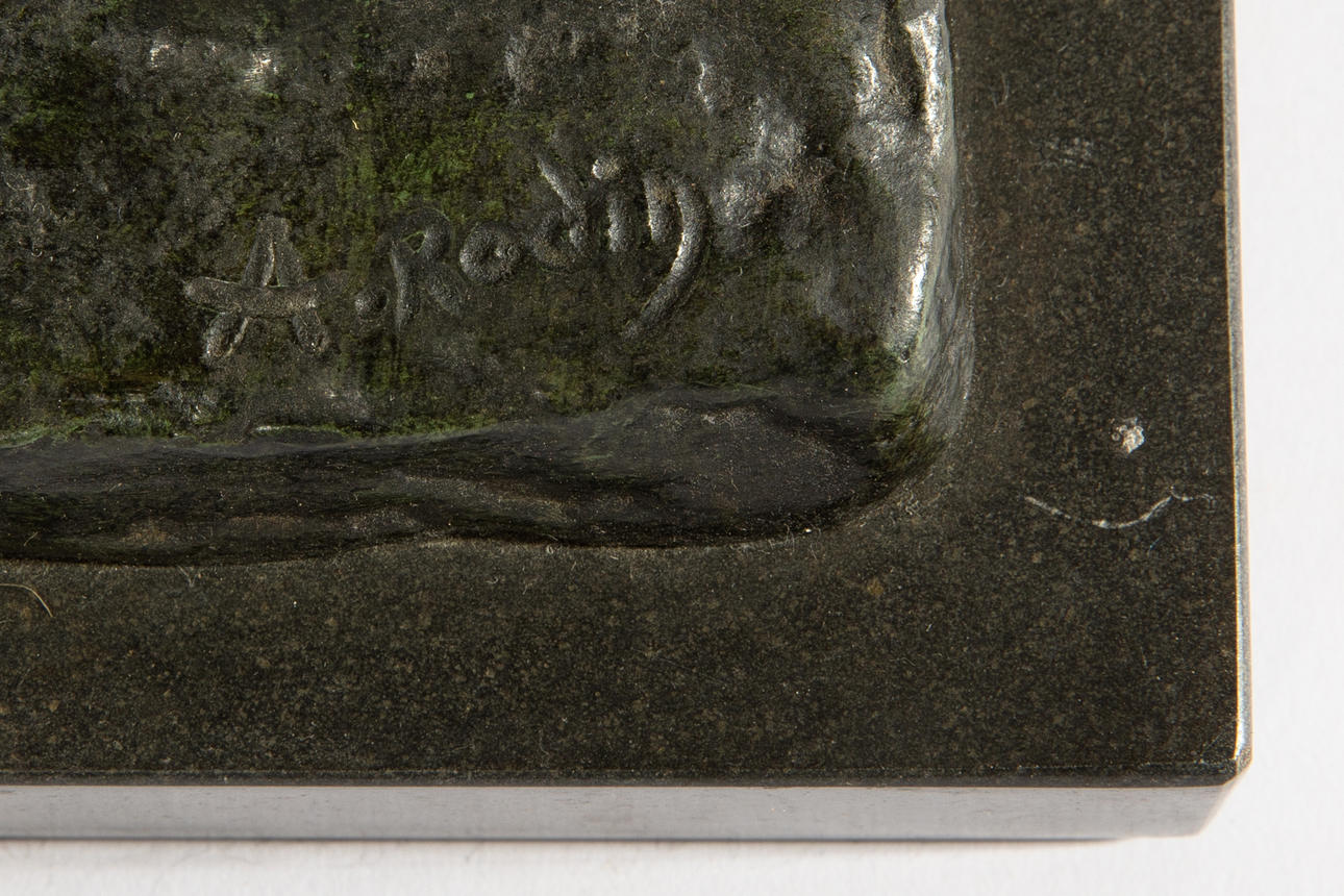 Eva. Stående kvinnlig figur. Brons, patinerad i mörkgrön svart. Svart sten bas. Postum gjutning. H. 46 cm (med bas). På sockeln: A. Rodin (infälld), inskriven på sockelkanten: ALEXIS RUDIER/ FONDEUR PARIS, numrerad 9/25 på sidan.