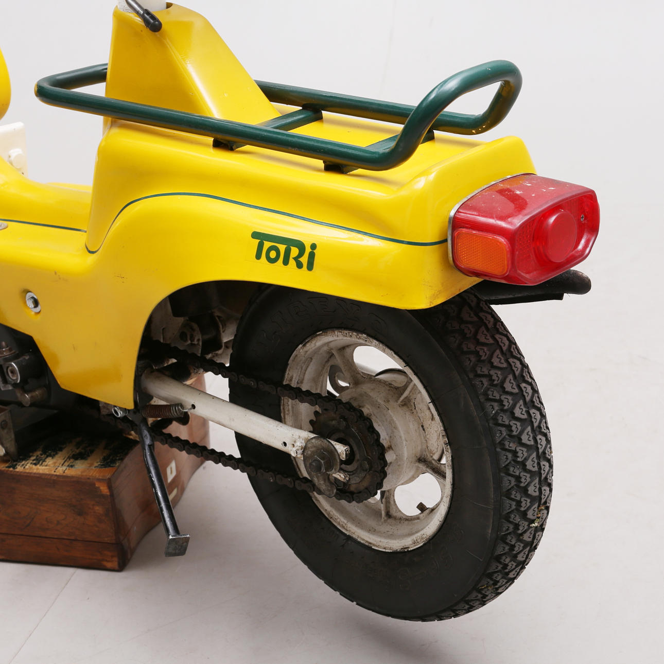 Bruksslitage. Fungerar enligt uppgift från säljare. Repor, märken, fläckar. Stöd trasigt. Utbytt bromshandtag. Ej funktionstestad.