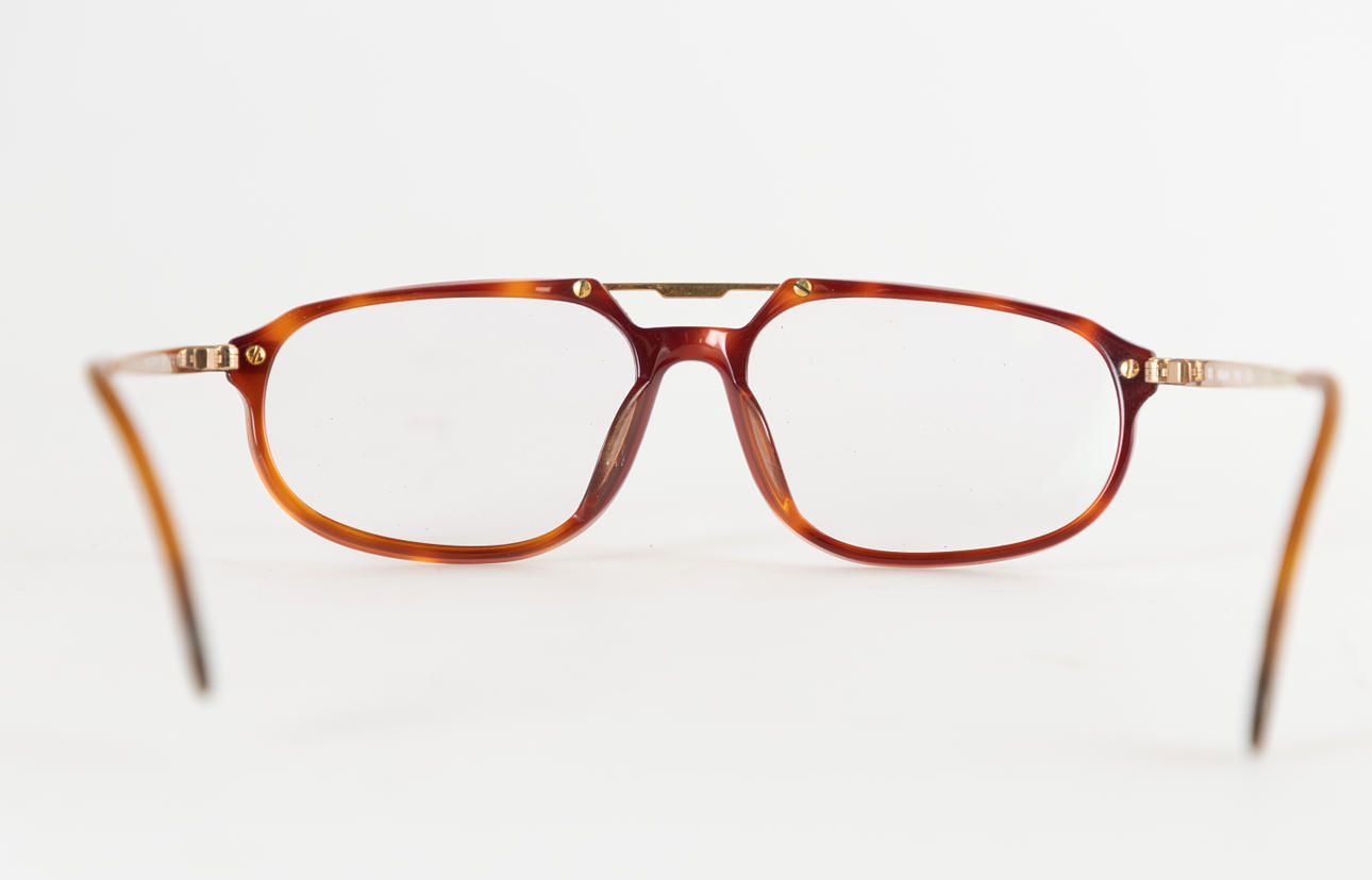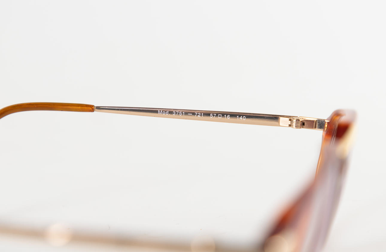 Guldpläterad metall/sköldpaddsfärgad polymer. Var och en har företagslogotypen på galgarna. Modell nr.:3751-721 I originalfallet.