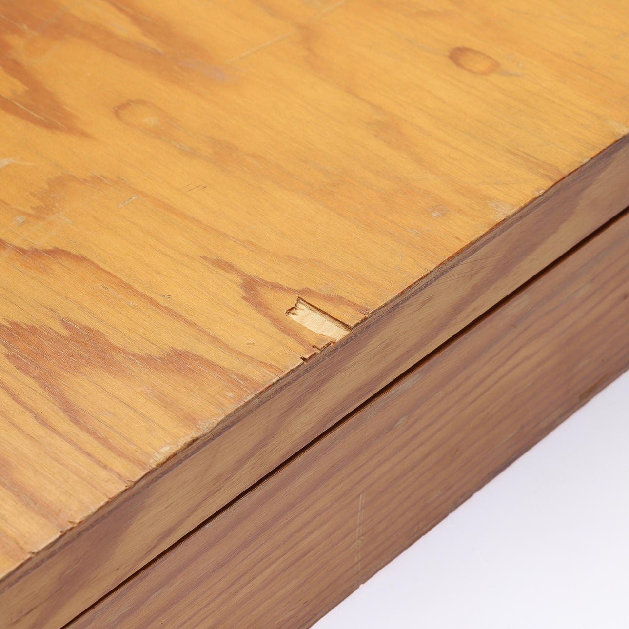 Ej genomgången. Bruksslitage, låda med skavmärken och fanerbortfall.