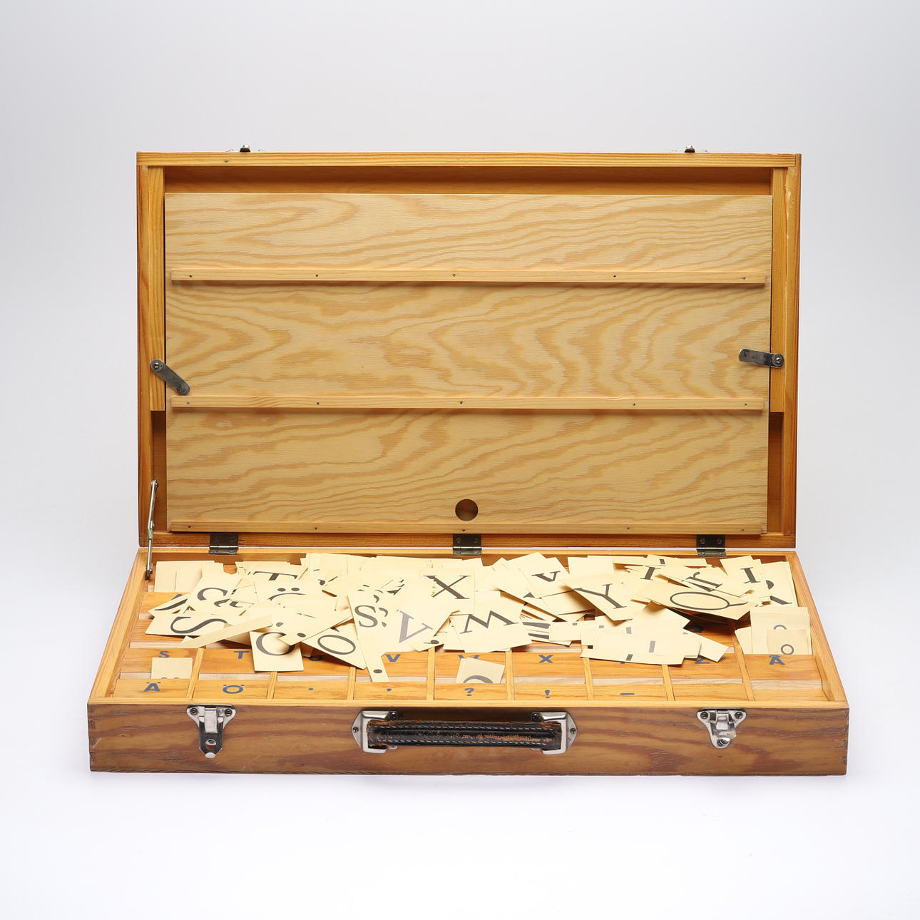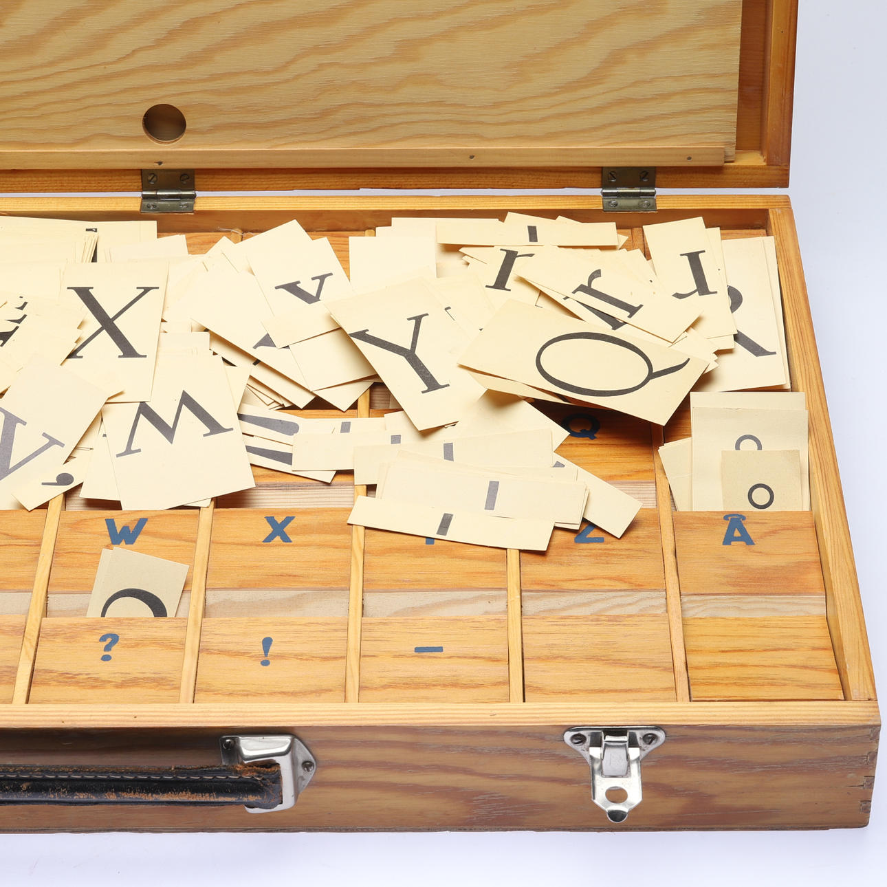 Bokstavskort i papp. Lådans mått ca 60x36 cm.