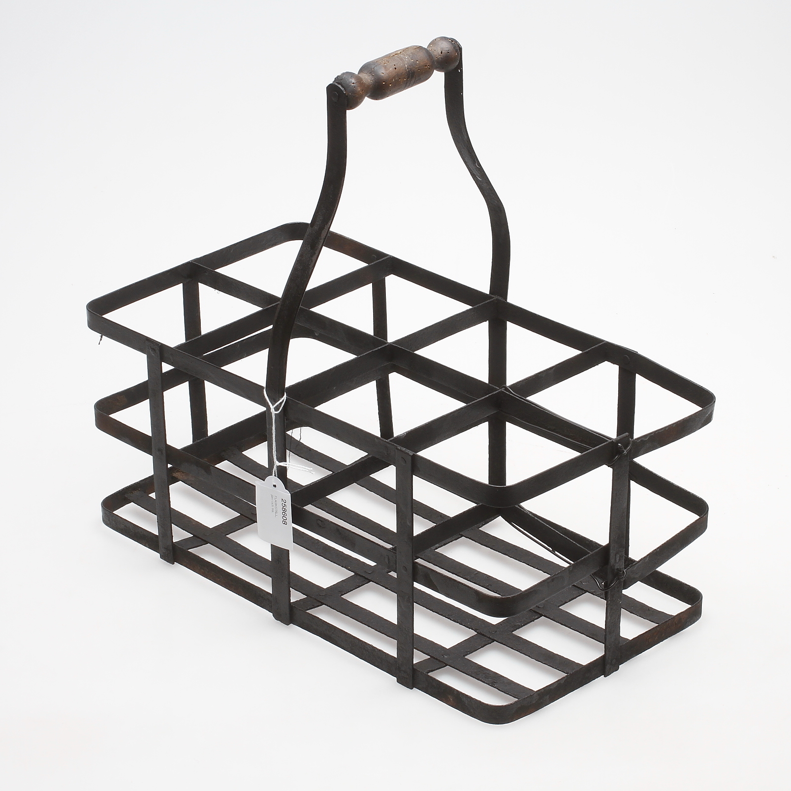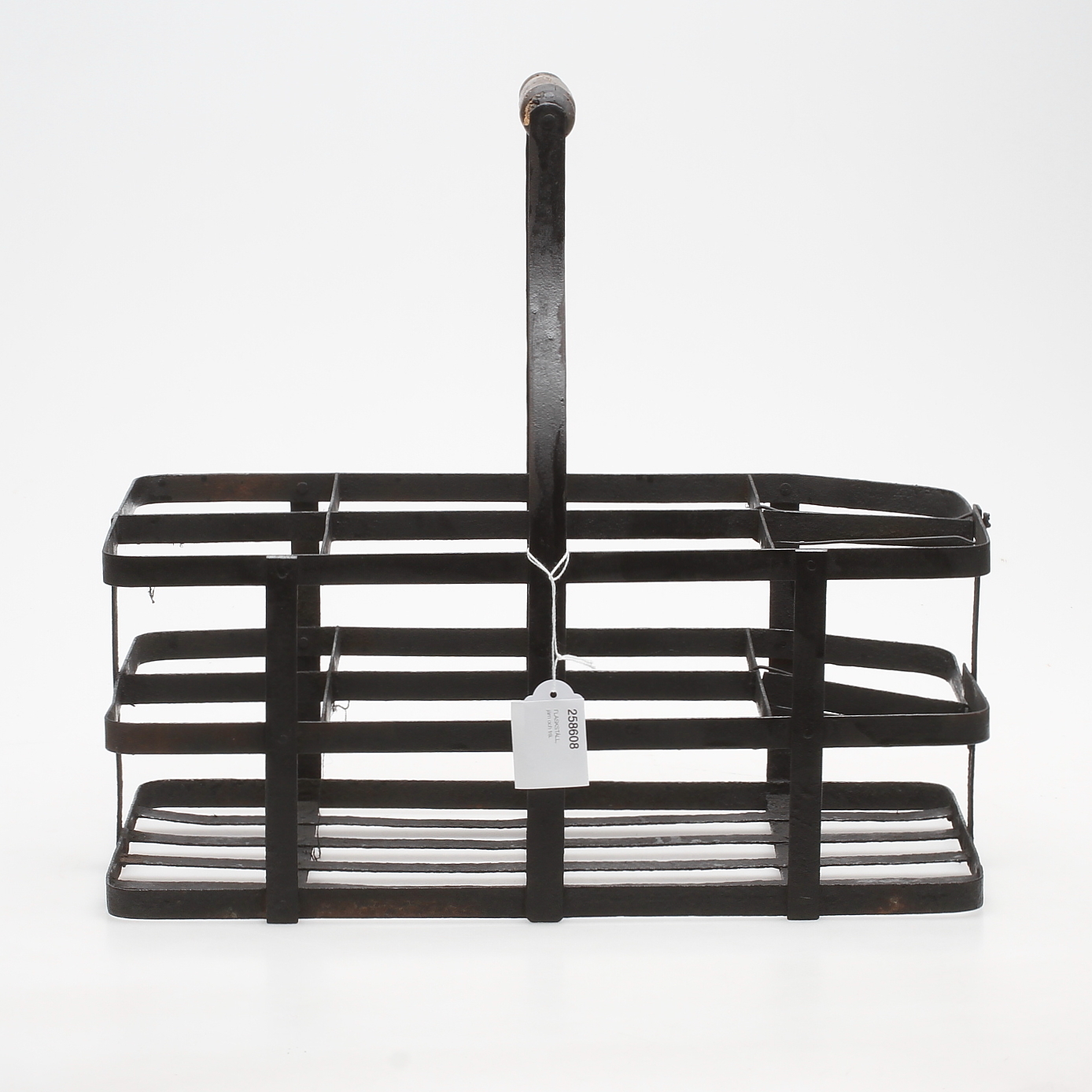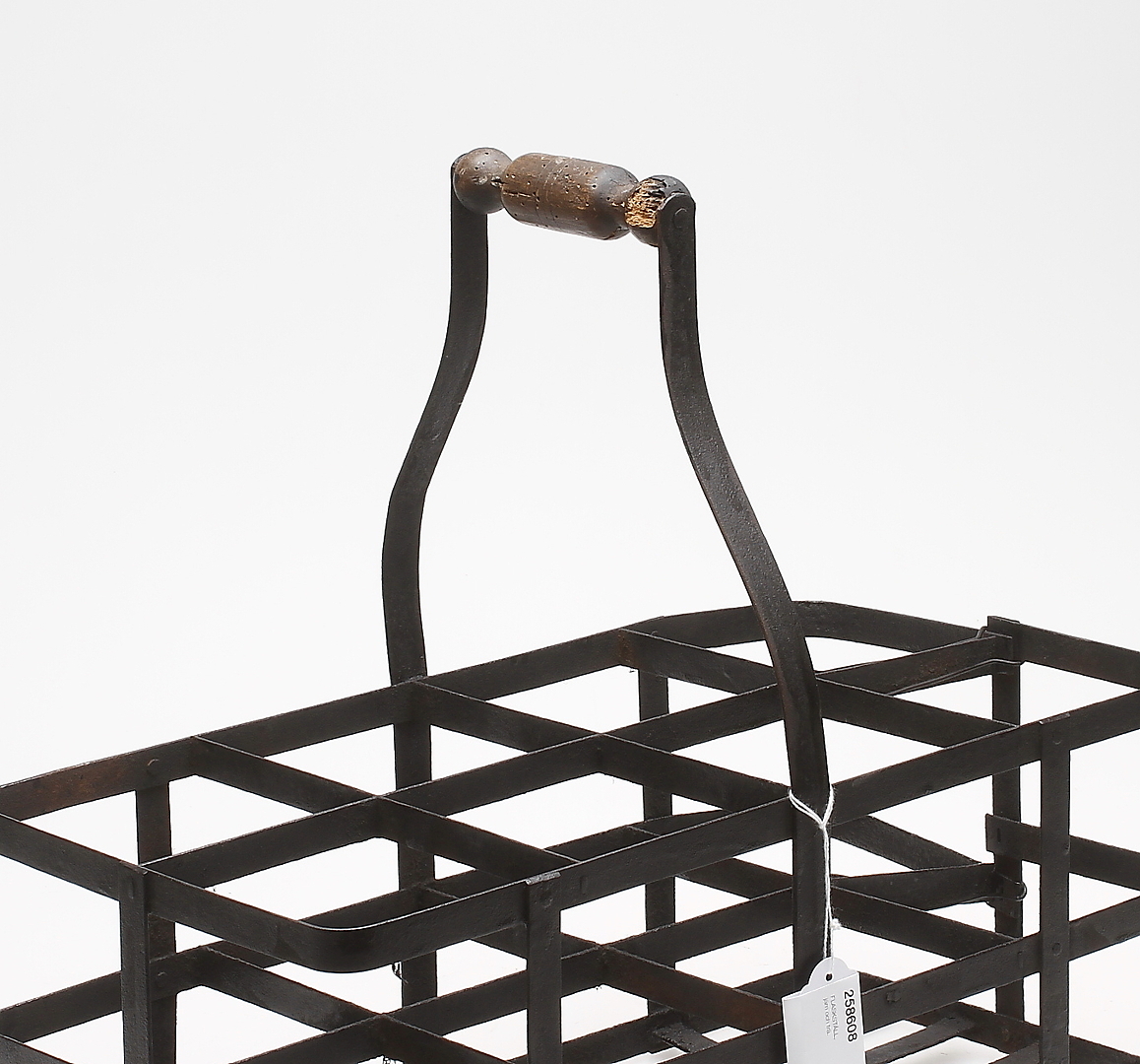 258608. FLASKSTÄLL, järn och trä.