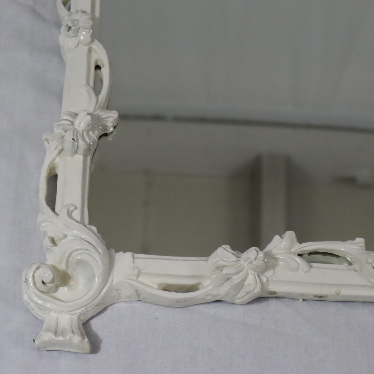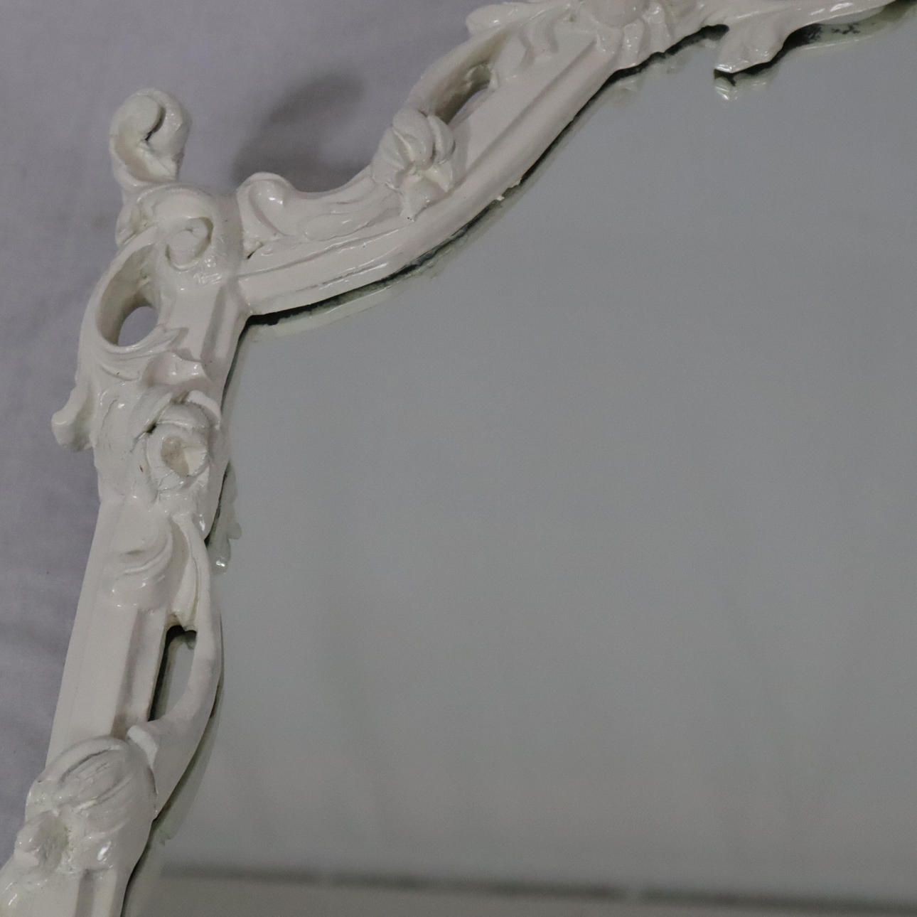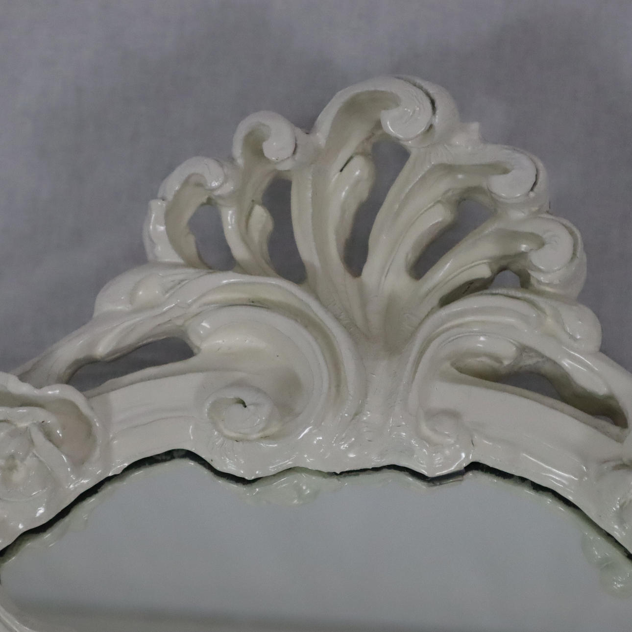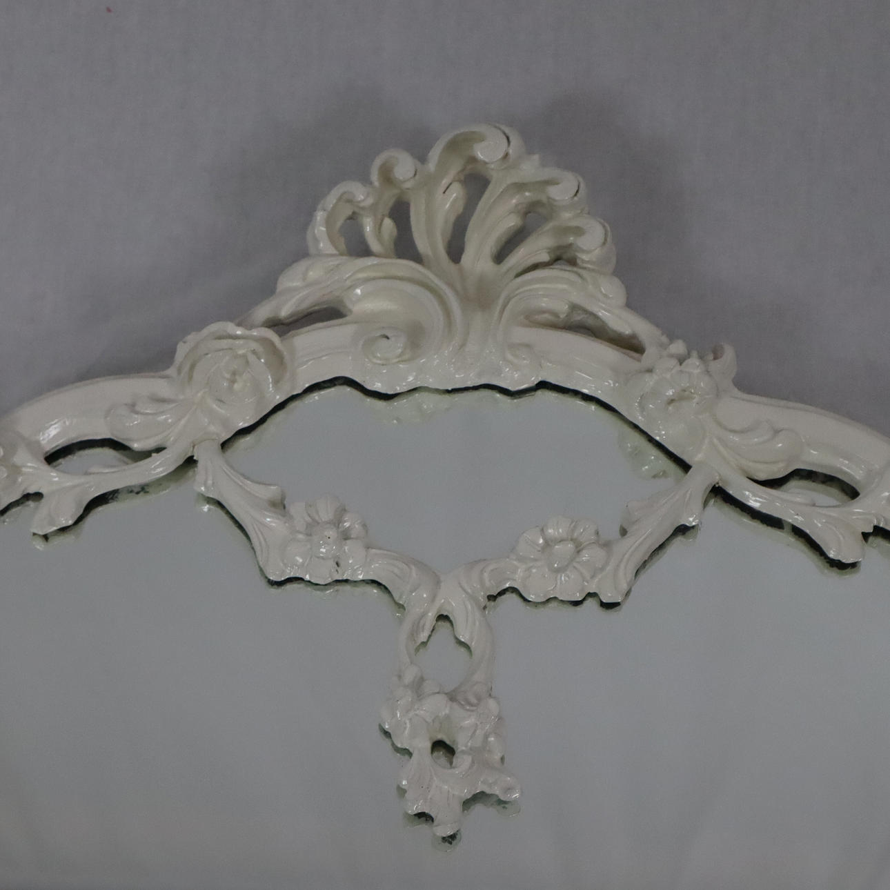 Snidad med blomrankor och rocaillwork, böjd spegelplatta, HxBxD: ca 126x74x5cm.