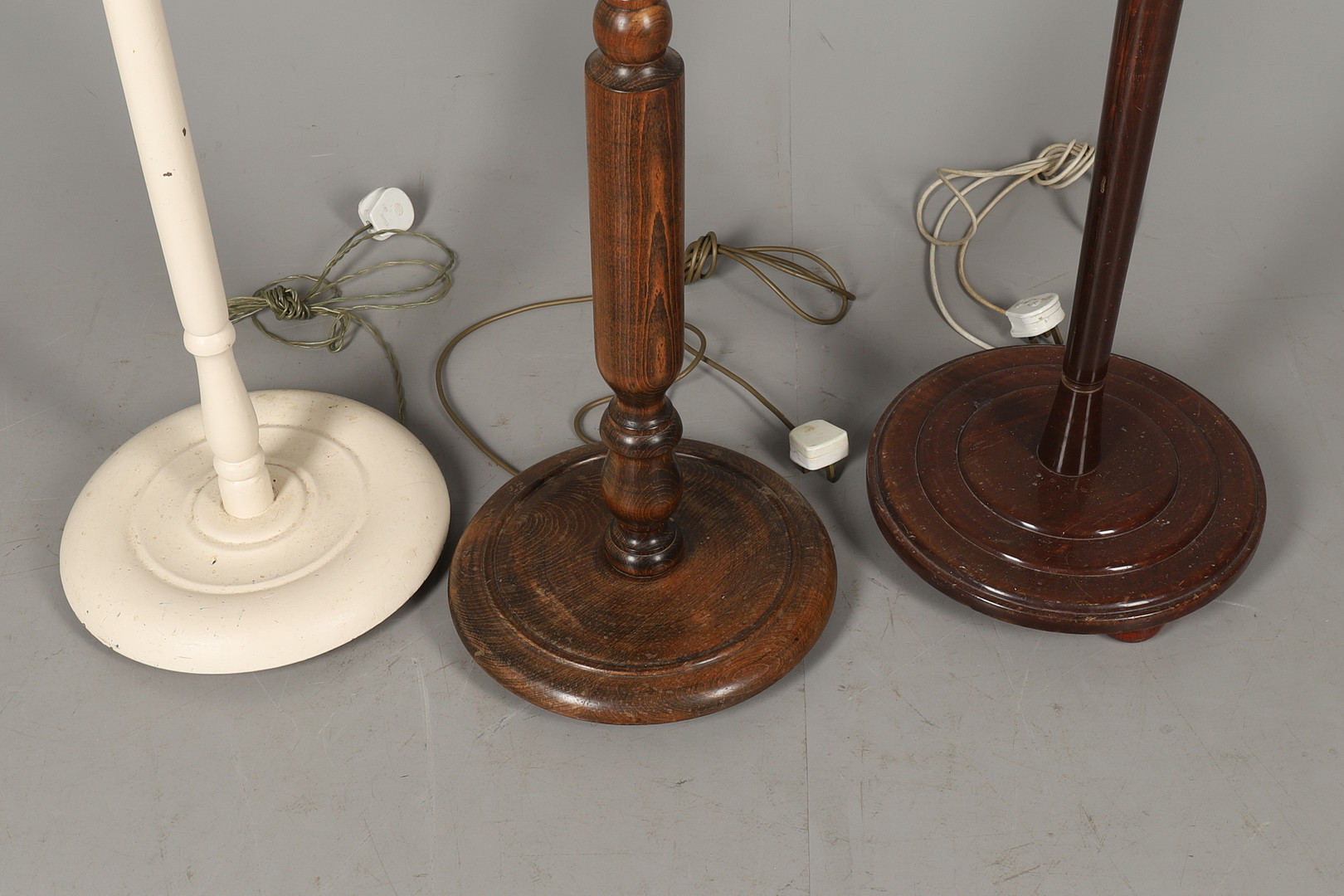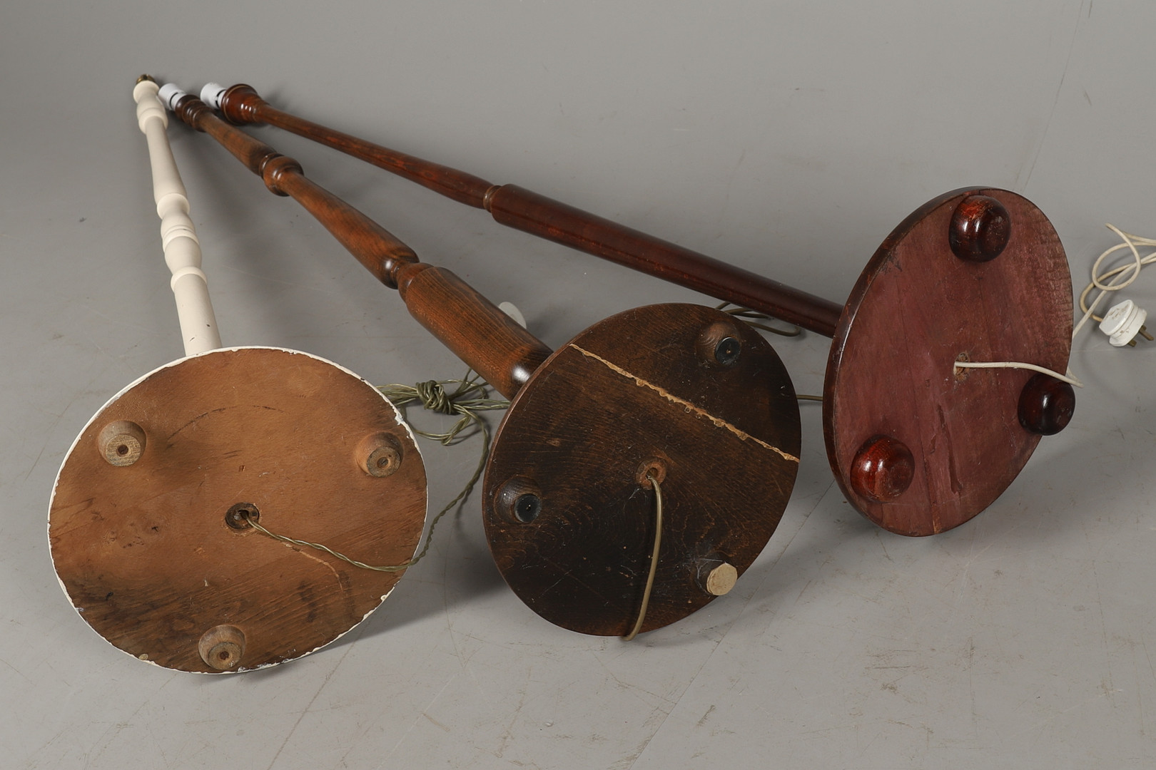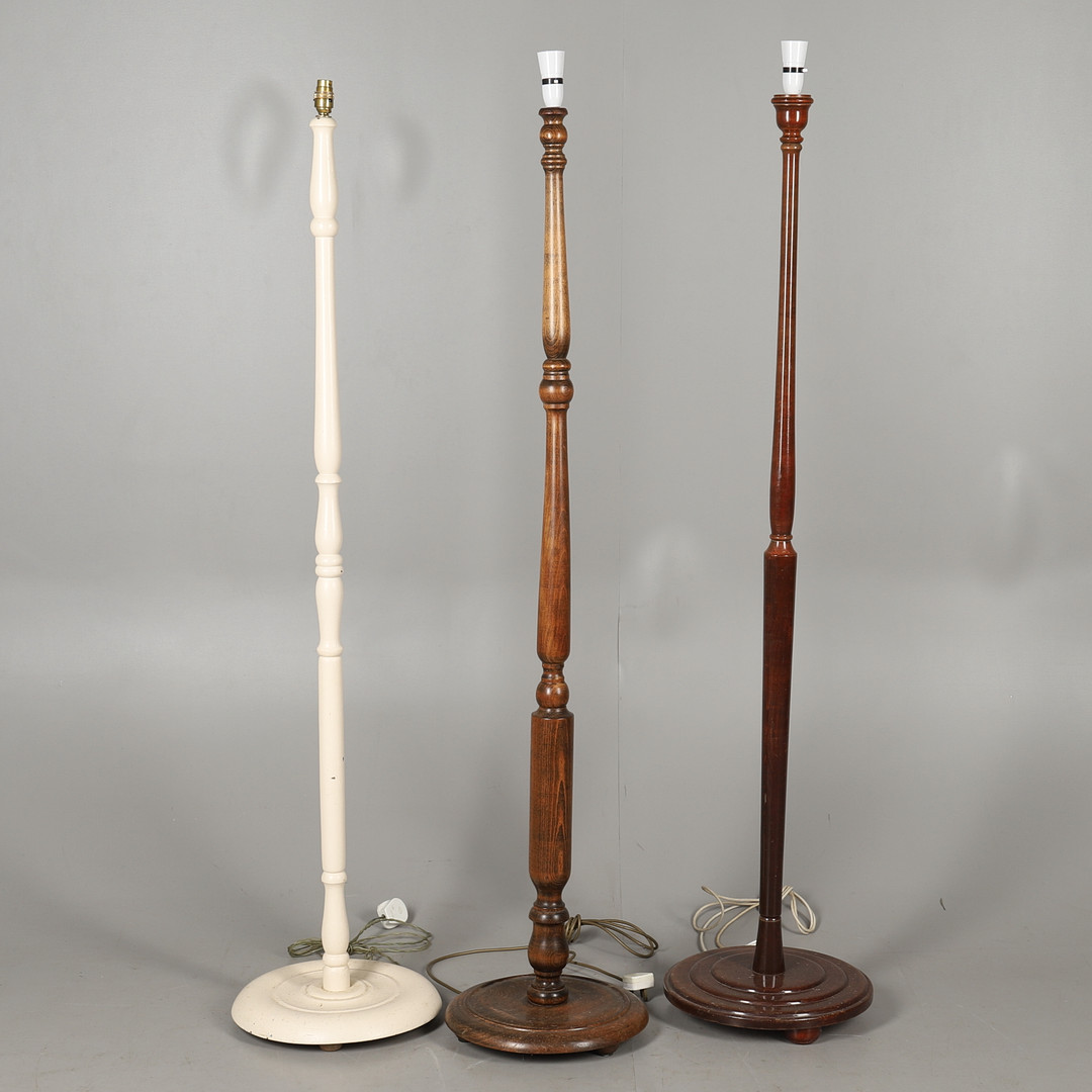 2587206. TRE VÄNDE TRÄ LAMPA STANDARDER.