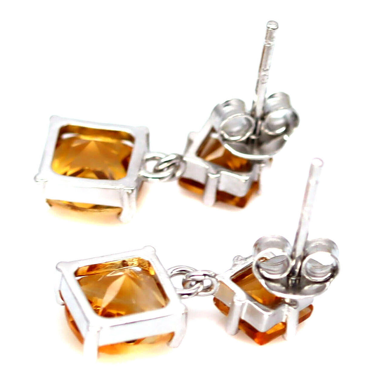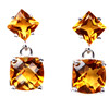 ÖRHÄNGEN 925 silver med fyrkantig och kuddslipade orange citriner, ca 1.7cm.