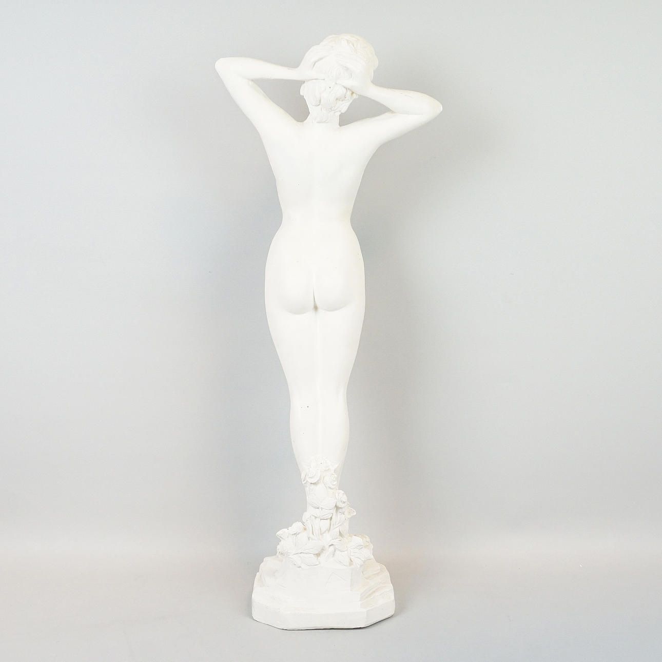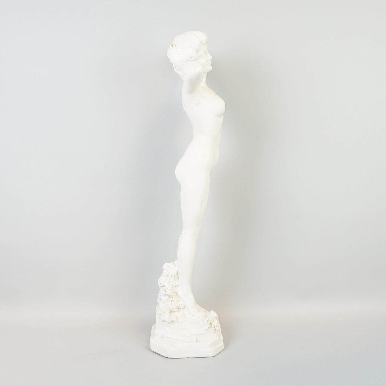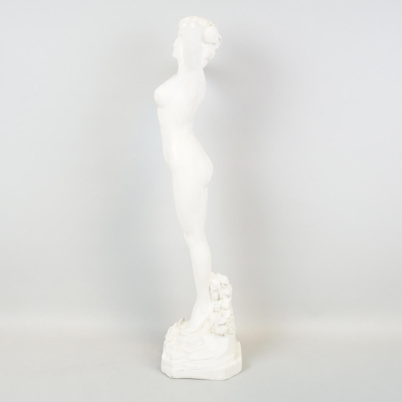 Kvinnostudie, bemålat gips. Höjd ca 61 cm, Bredd ca 25 cm, Djup ca 16 cm.