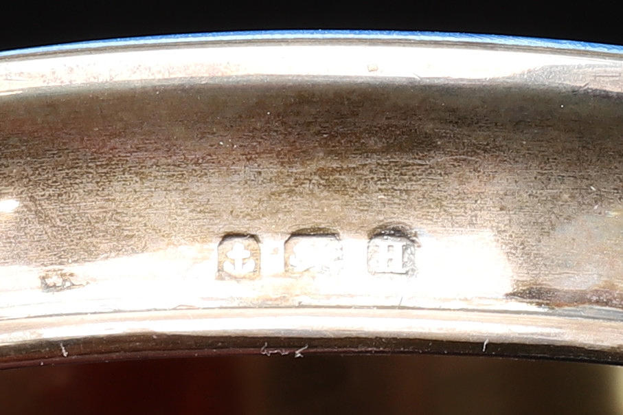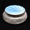 Blå guillocherad emalj omslaget stämplade Birmingham 1932, 12cm diameter.