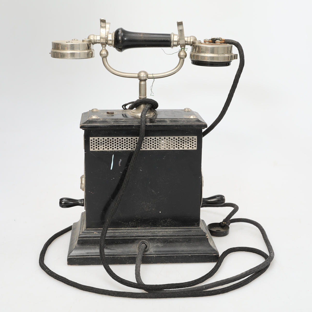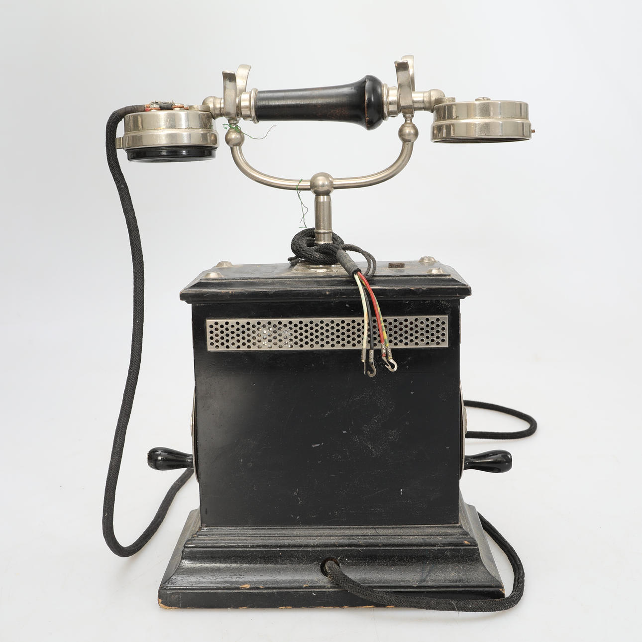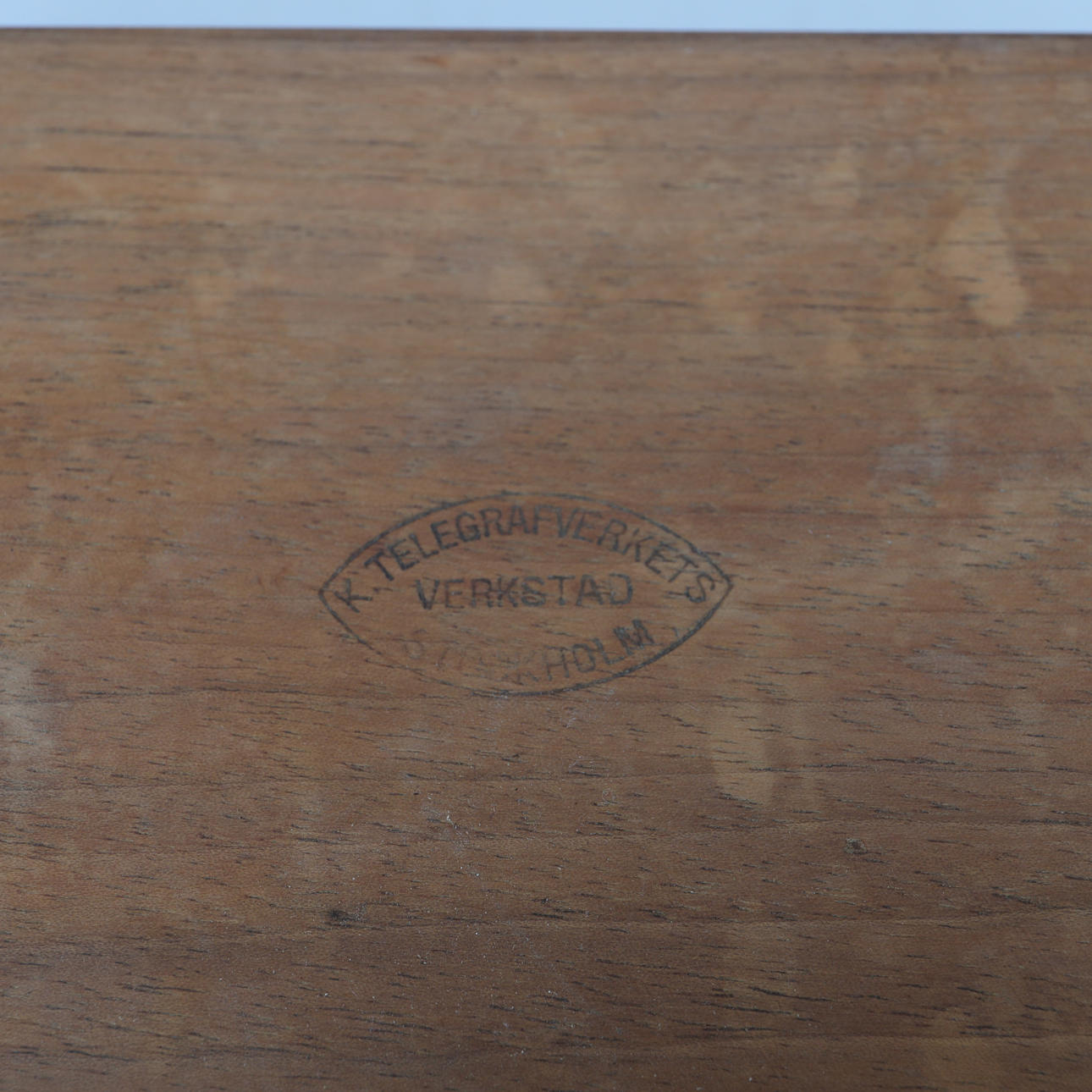 Den lilla ringsignalsförstärkaren är märkt "K.Telegrafverkets Verkstad Stockholm".