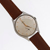 38 mm diameter stål fallet. Champagnefärgad urtavla och mikrosekund klockan sex. Läderrem med spänne stängning. Manuell lindning rörelse.