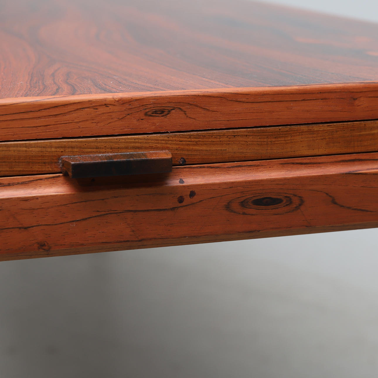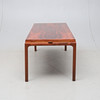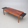 2 utdragbara skivor i sarg, inlagda med laminat. Längd ca 140cm, bredd ca 57cm, höjd ca 50cm.